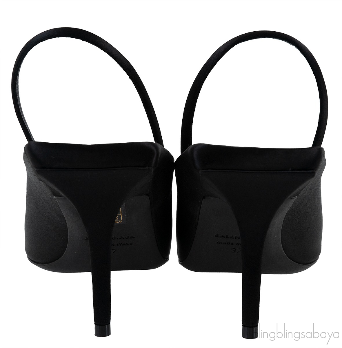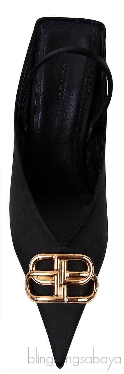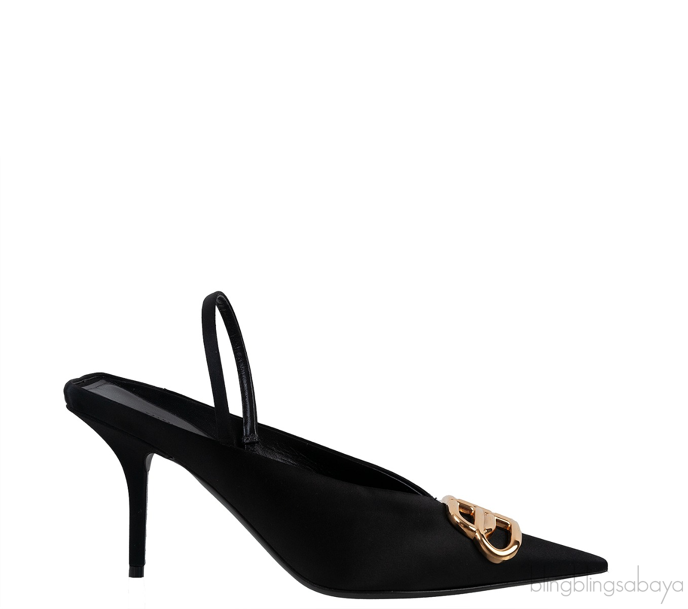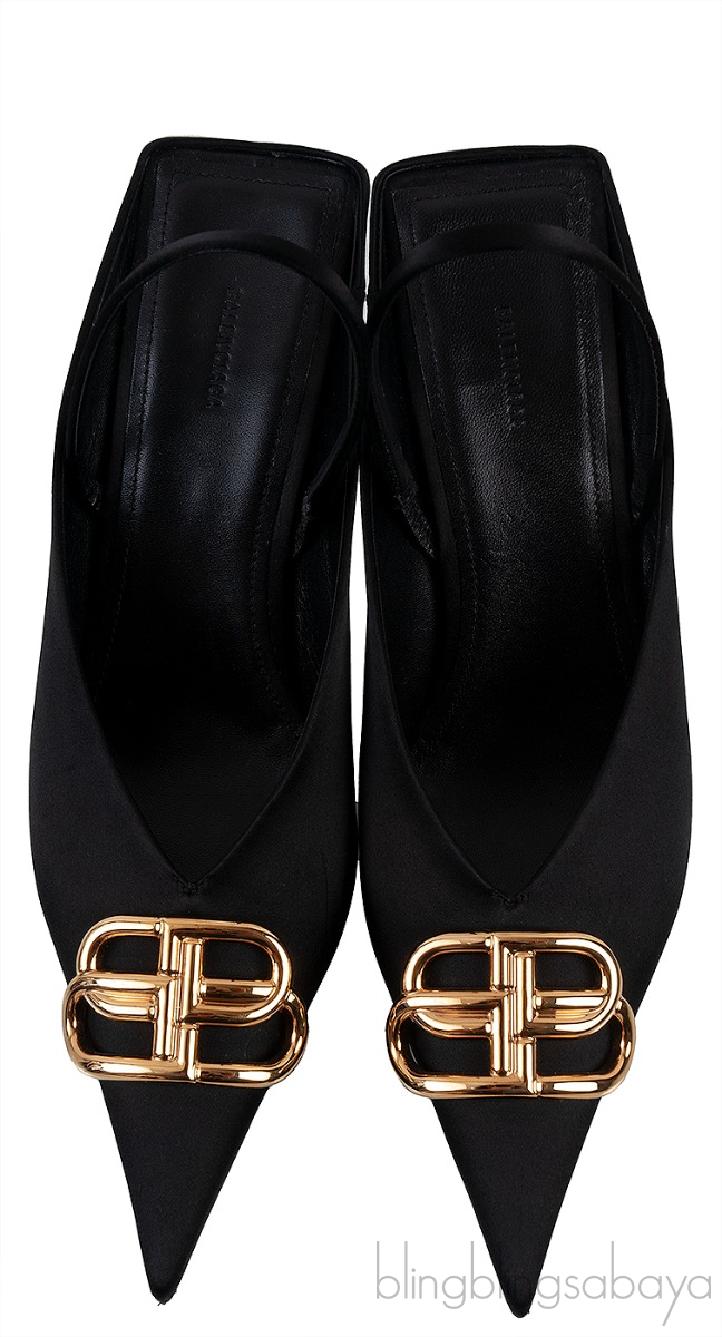 Black Satin BB Pointed Toe Slingback from Balenciaga!