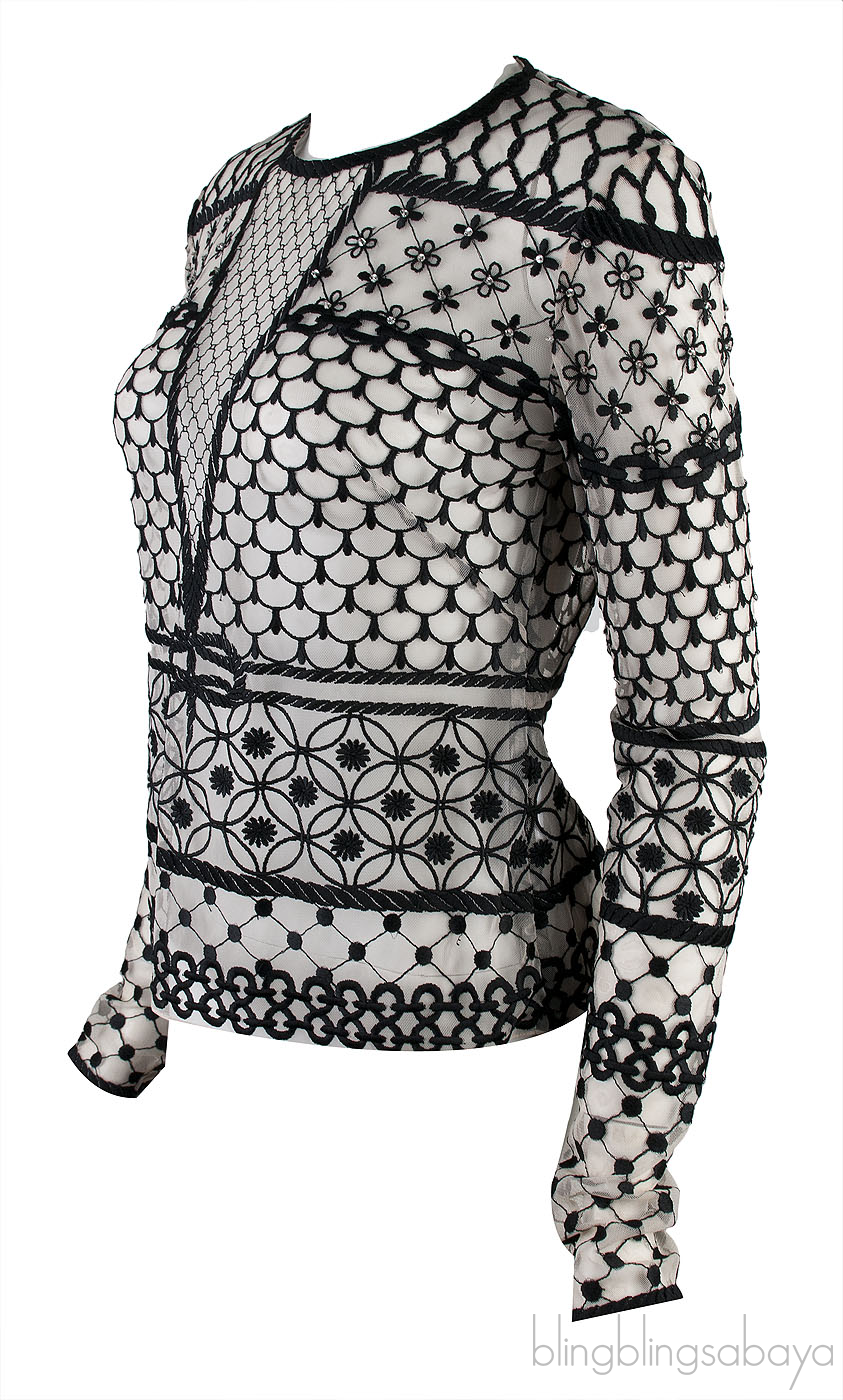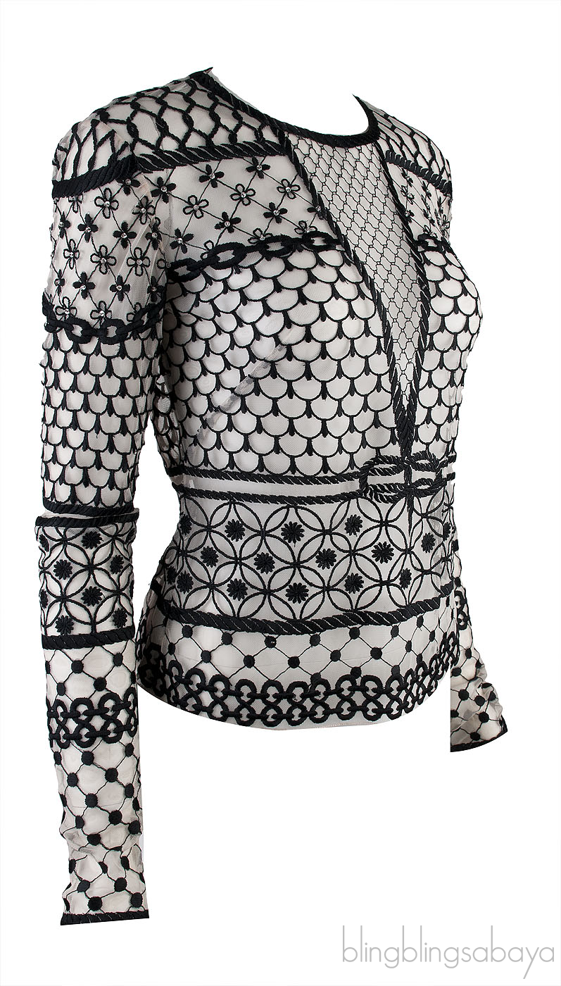 This Black Semi-sheer Crystal Top from Temperley London is crafted from 100& nylon featuring a semi-sheer mesh fabric with black embroidery all all-over, sequin & beads embellishment, round neckline, long sleeves, pull-over style with zip fastening on the side.