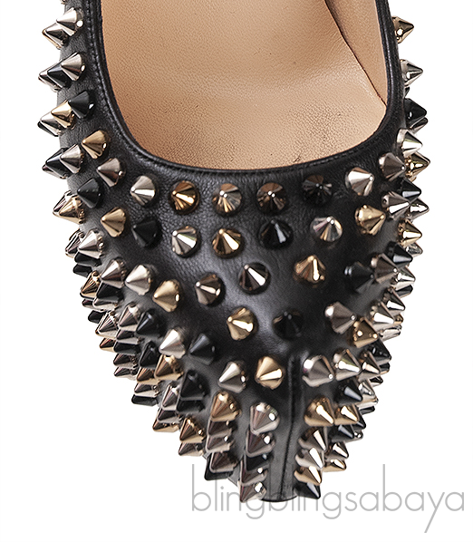 These Black Spike Platform Heels from Christian Louboutin are crafted from black leather upper with nude leather lining. These heels features a multicolor spikes accent, leather lined insole, platform, red signature leather sole and heels measuring 150 mm high.