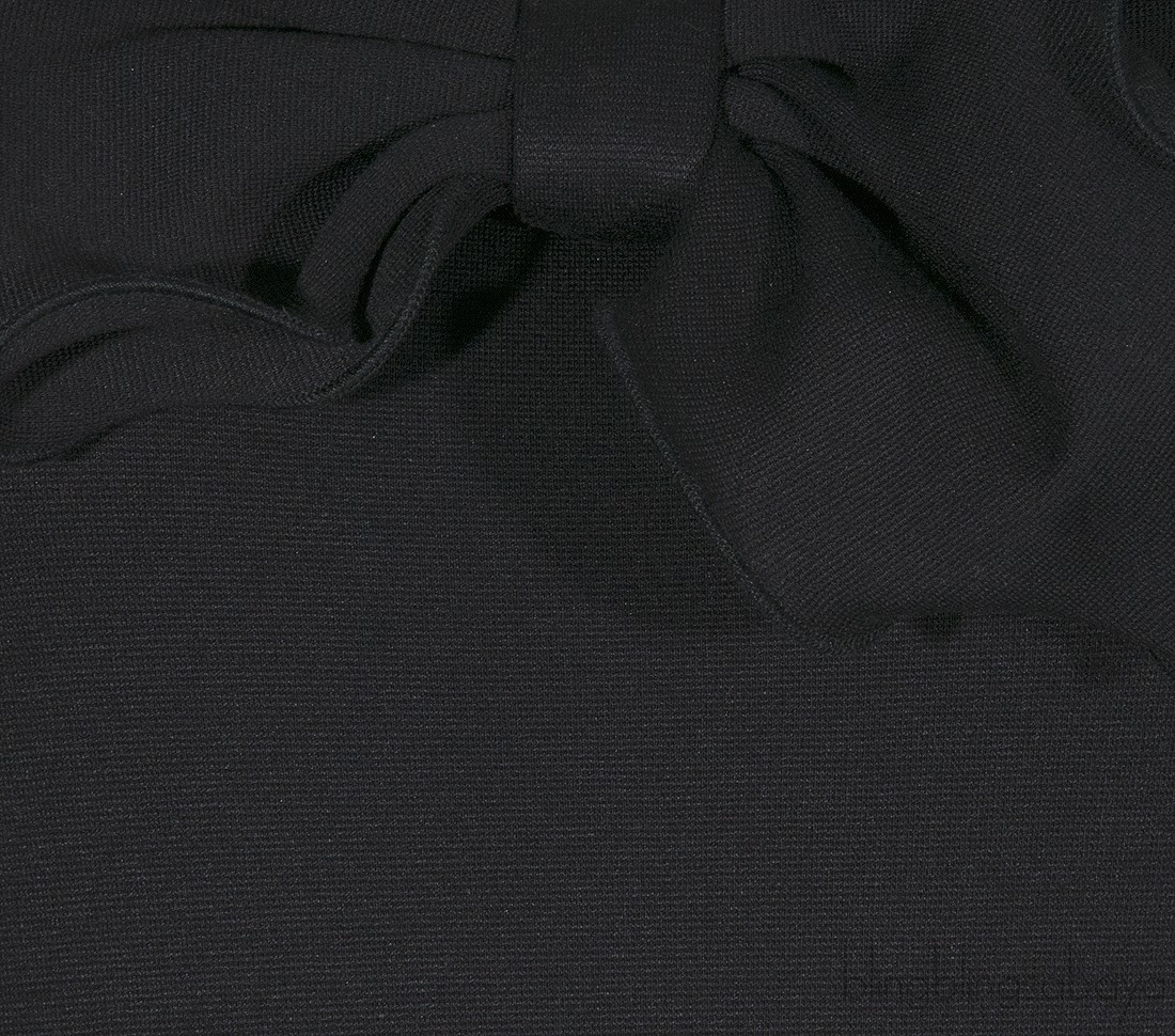 This Black Ruffled Sheath Dress from Red Valentino is made in plain black stretched fabric featuring a round neckline, sleevelevess, fitted silhoute, zip fastening on the side and ruffled trimming on neckline and sleeves and has bow detailing at front underneath the neckline.