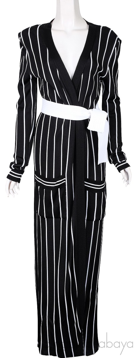 Black Stripe Knit Stretch Cardigan Robe from Balmain!