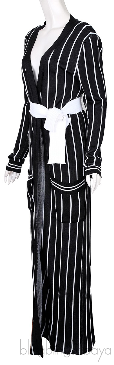 This Black Stripe Knit Stretch Cardigan Robe from Balmain is crafted from black stretch striped fabric featuring an open front, pockets at front and comes with two detachable belts.