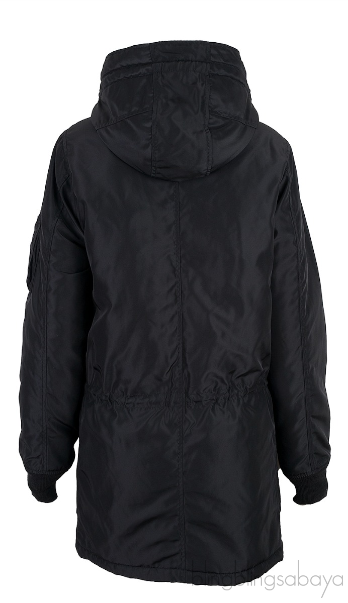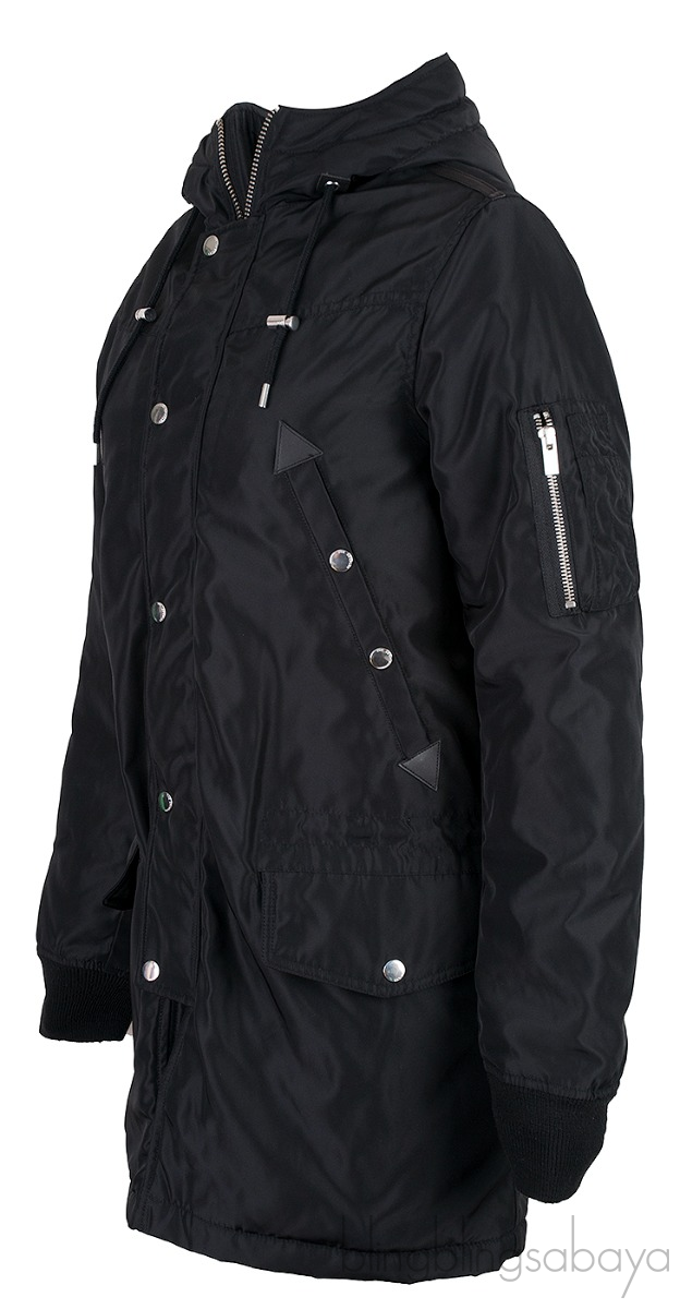 Composition 100% Polyester, Lining 100% Polyester, Hood Lining 84% Acrylic, 16% Polyester, Bande Strip 100% Lambskin