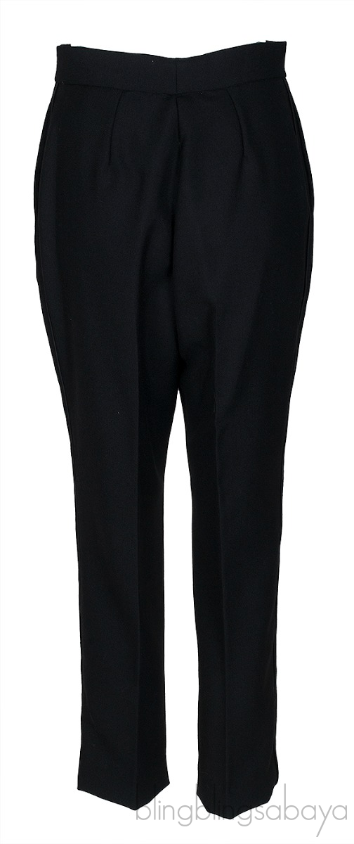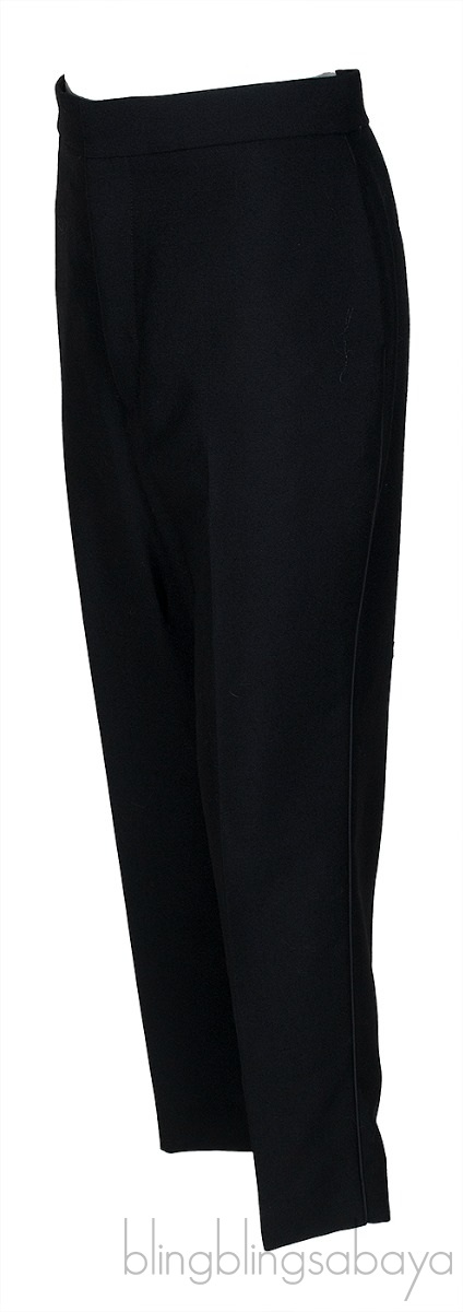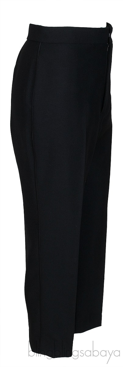 This Black Wool Blend Trouser from Balenciaga is crafted from 55% Wool & 45% Mohair iwth 100% Cotton lining. This trouser features a high waist line, button, hook and zip fastening at front and has two side pockets.