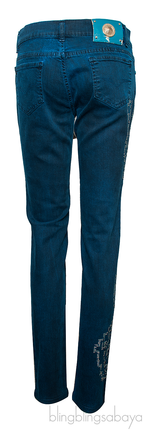 This Blue Washed Jeans from Love Moschino is crafted from 98% Cotton and 2% Elastane featuring five classic pockets with swirly crystal design and waist, belt loops.