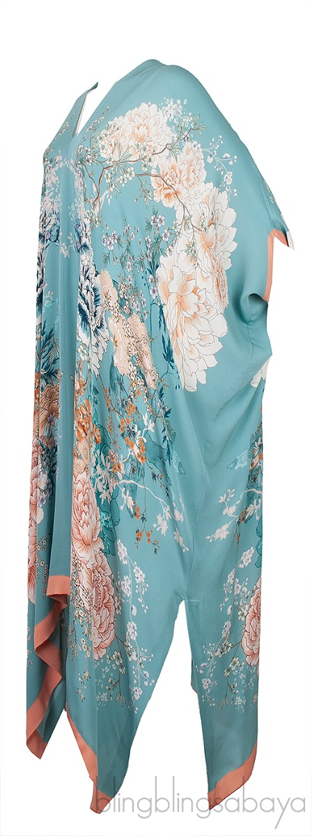 Blue Floral Print Silk Kaftan Dress from Meng!