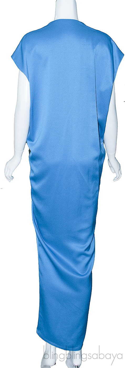 Blue Gathered Front Maxi Dress