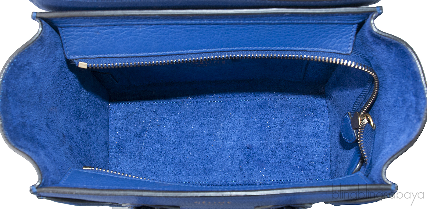 Add a dash of color to your wardrobe with this Nano Luggage Blue color from Celine. Crafted in eye catching blue grainy leather with a Gold Hardware. It has a vertical ridge on both sides that adds a stunning characteristic and has frontal zip.