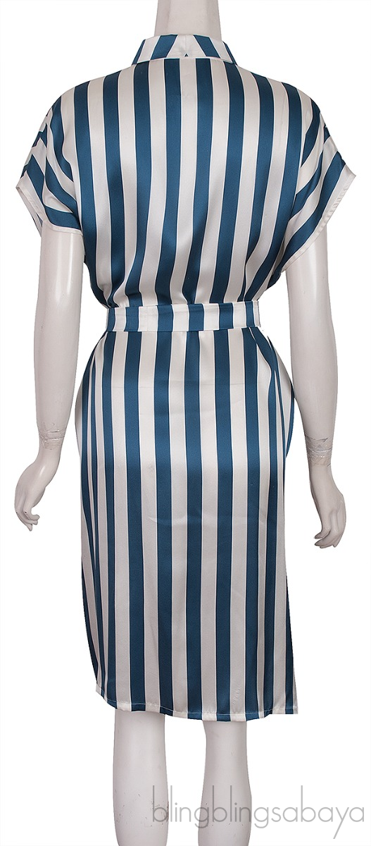 Blue & Off-white Stripe Belted Dress