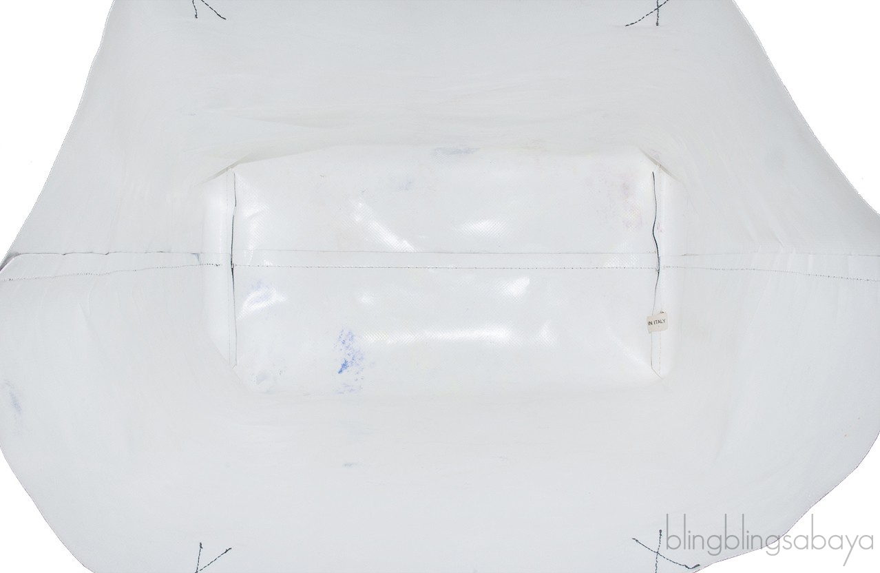 This Blue Printed PVC Tote from Marni is crafted in durable water resistant PVC in royal blue color with multicolor printing. This bag features two comfortable balck leather handles, Marni logo2 leather hanging on to the front and has very roomy interior to carry all your everyday essentials.