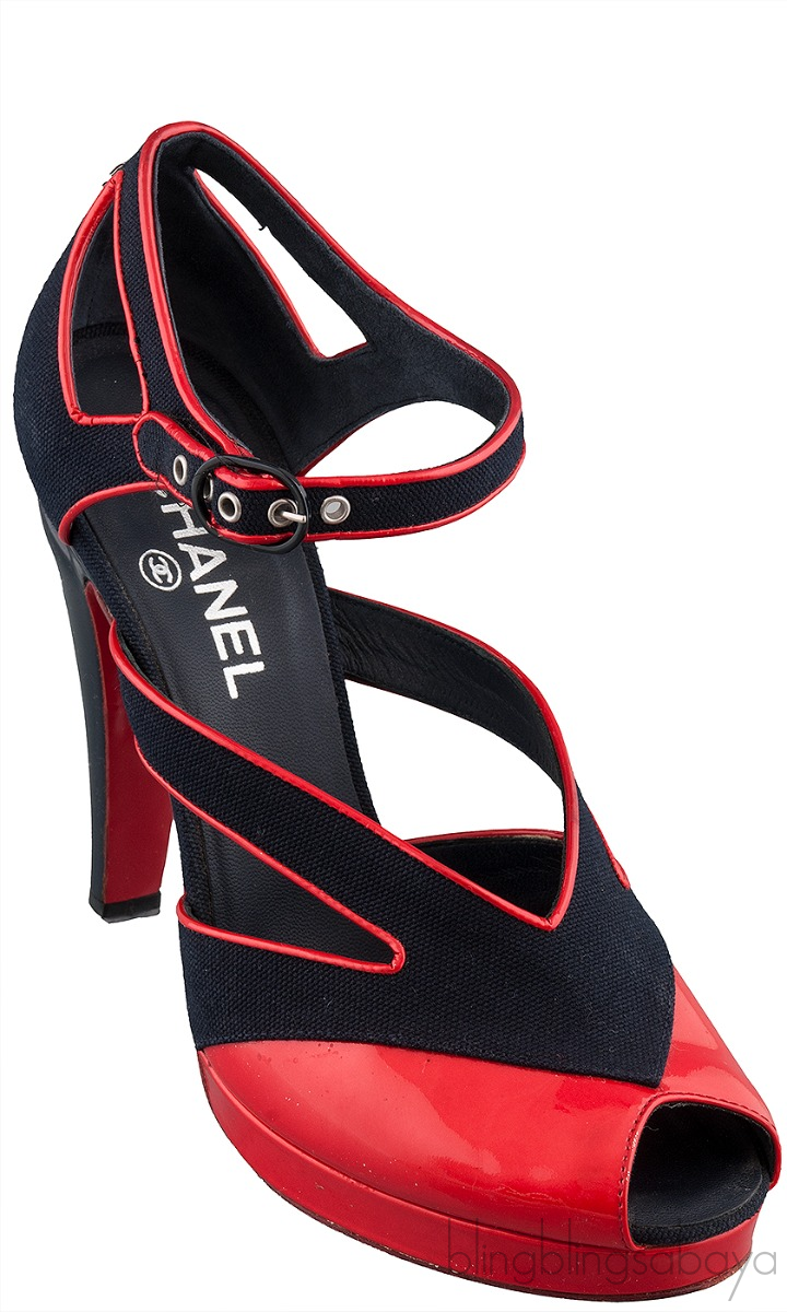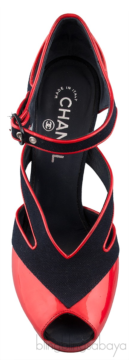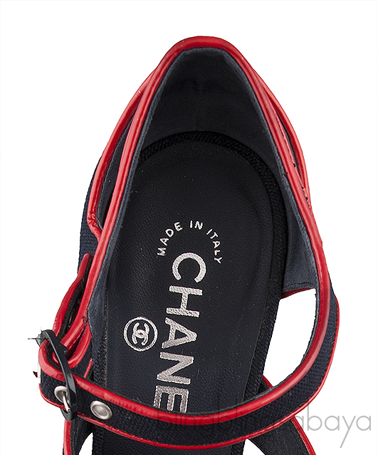Blue Fabric Red Trim Leather Heels from Chanel!