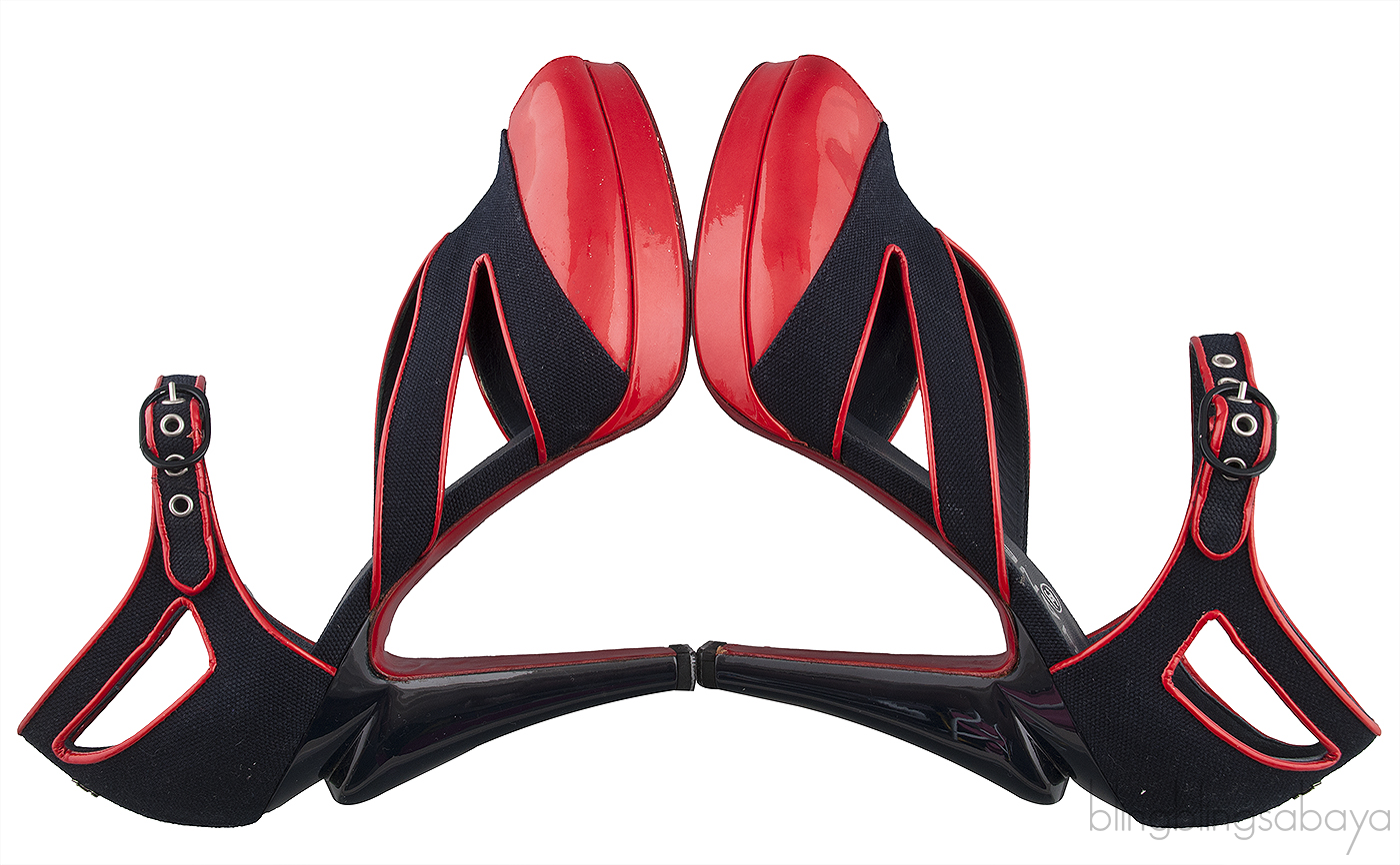 Blue Red Trim Leather Heels
