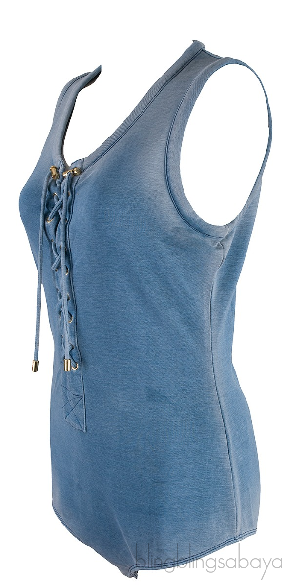 Blue Sleeveless Bodysuit