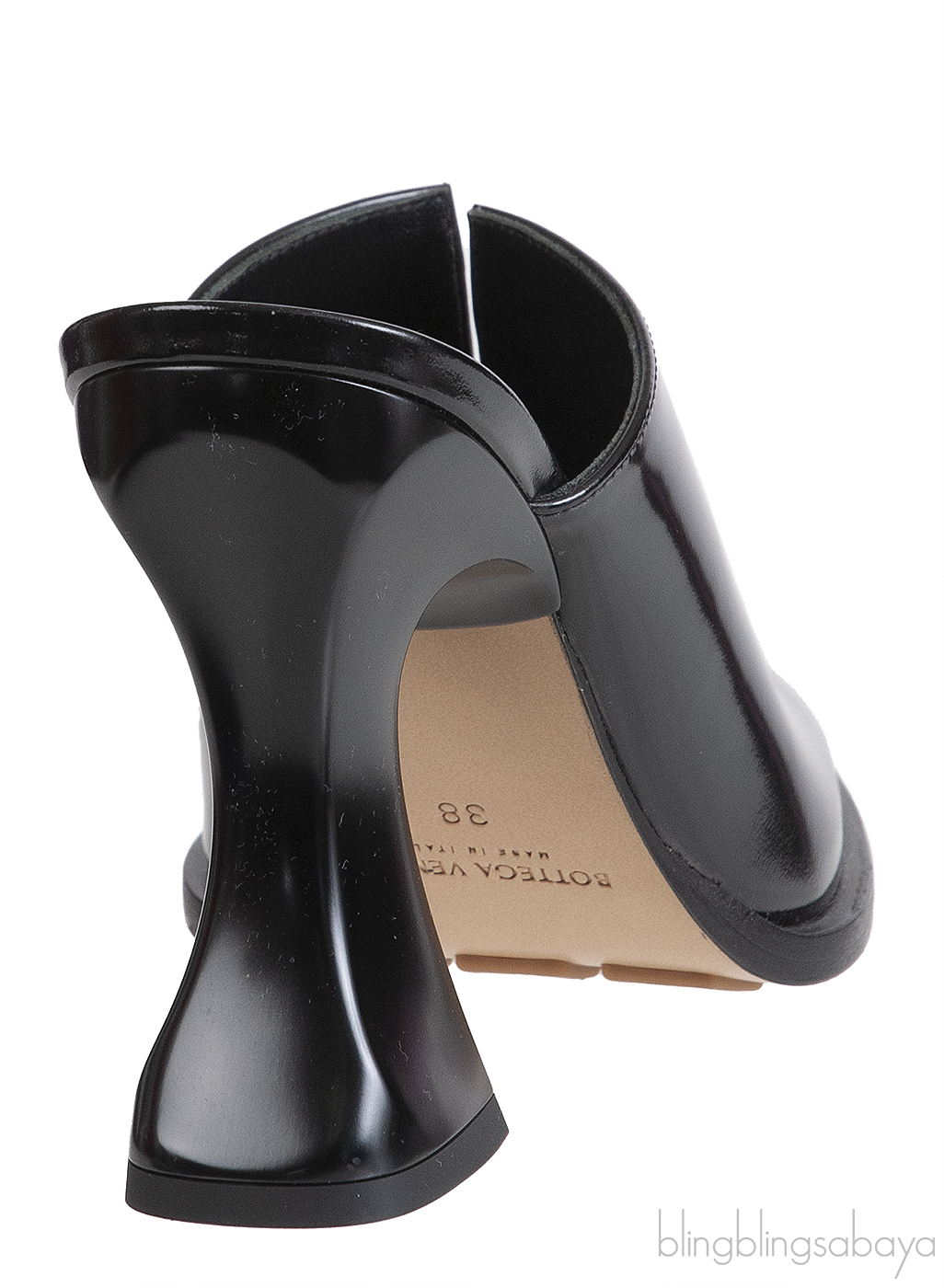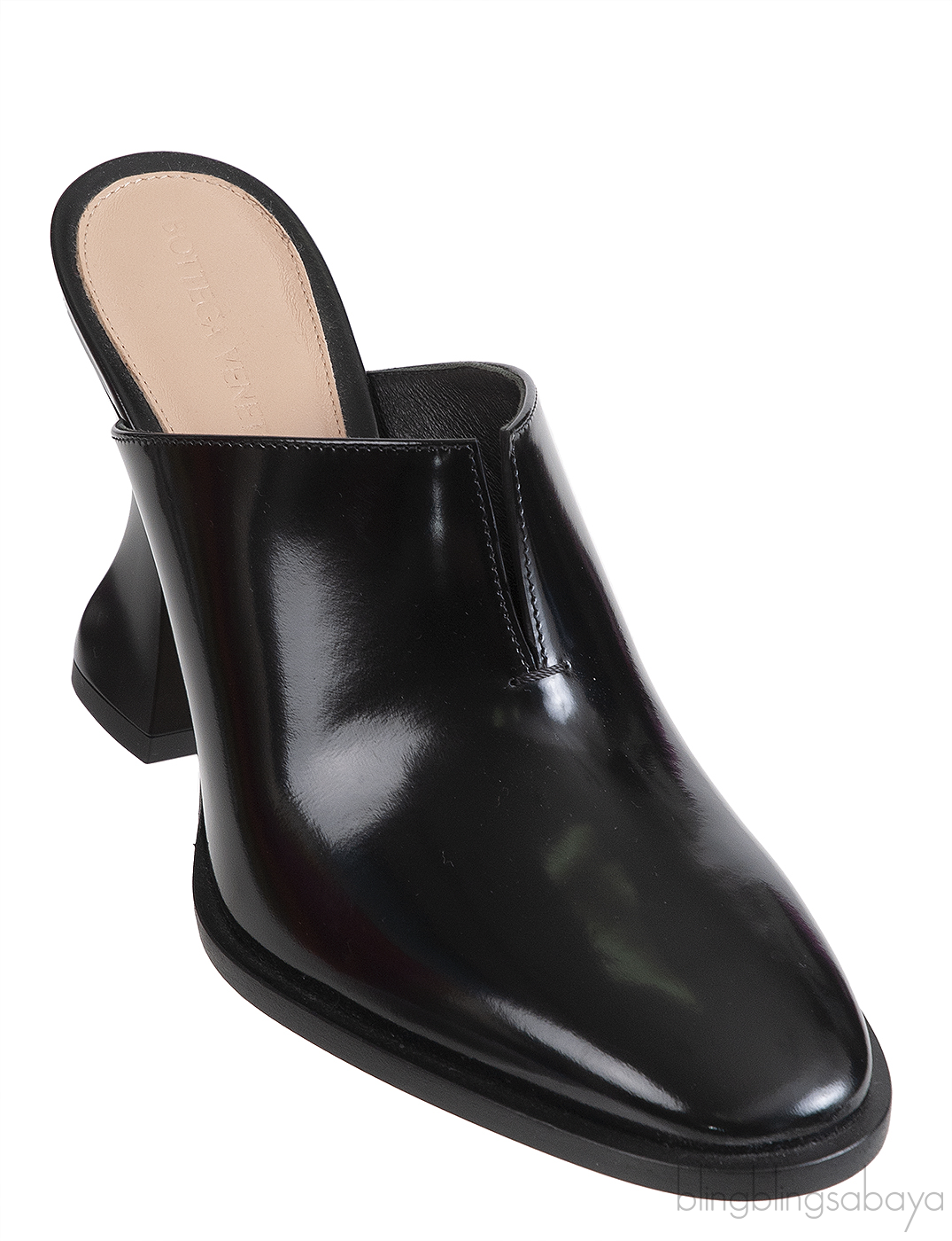 These Bottega Veneta Leather Cha-Cha Heeled 100 Mules are crafted from black patent leather with leather lining. These mules features a pointed toe, leather lined insole and sole, and sculptural heels measuring 100 mm high.