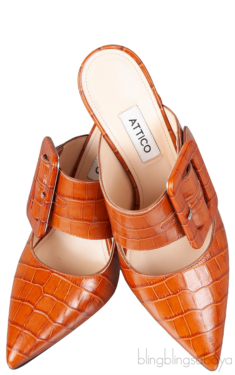 Brown Croc Embossed Chloe Mules from Attico!