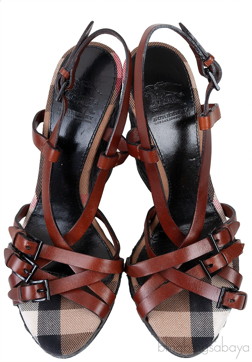 Brown Leather Strappy Wedge Sandals from Burberry!
