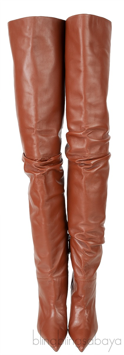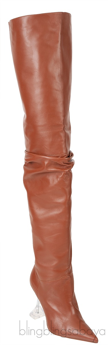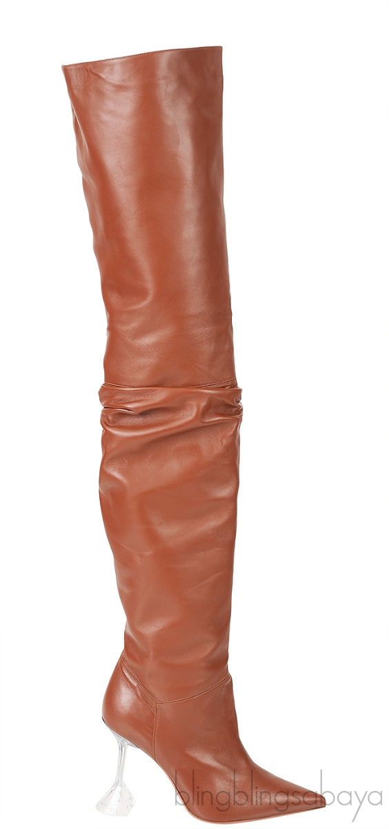 Brown Thigh-high Leather Boots from Amina Muaddi!