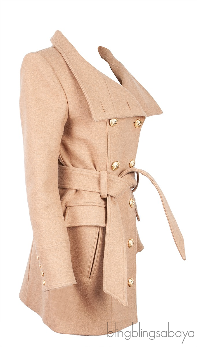 This Brown Wool Coat from Balmain is crafted from brown wool fabric featuring a double breasted design, signature gold buttons at front, pockets at front, long sleeves, belt loops at waist and has detachable belt.