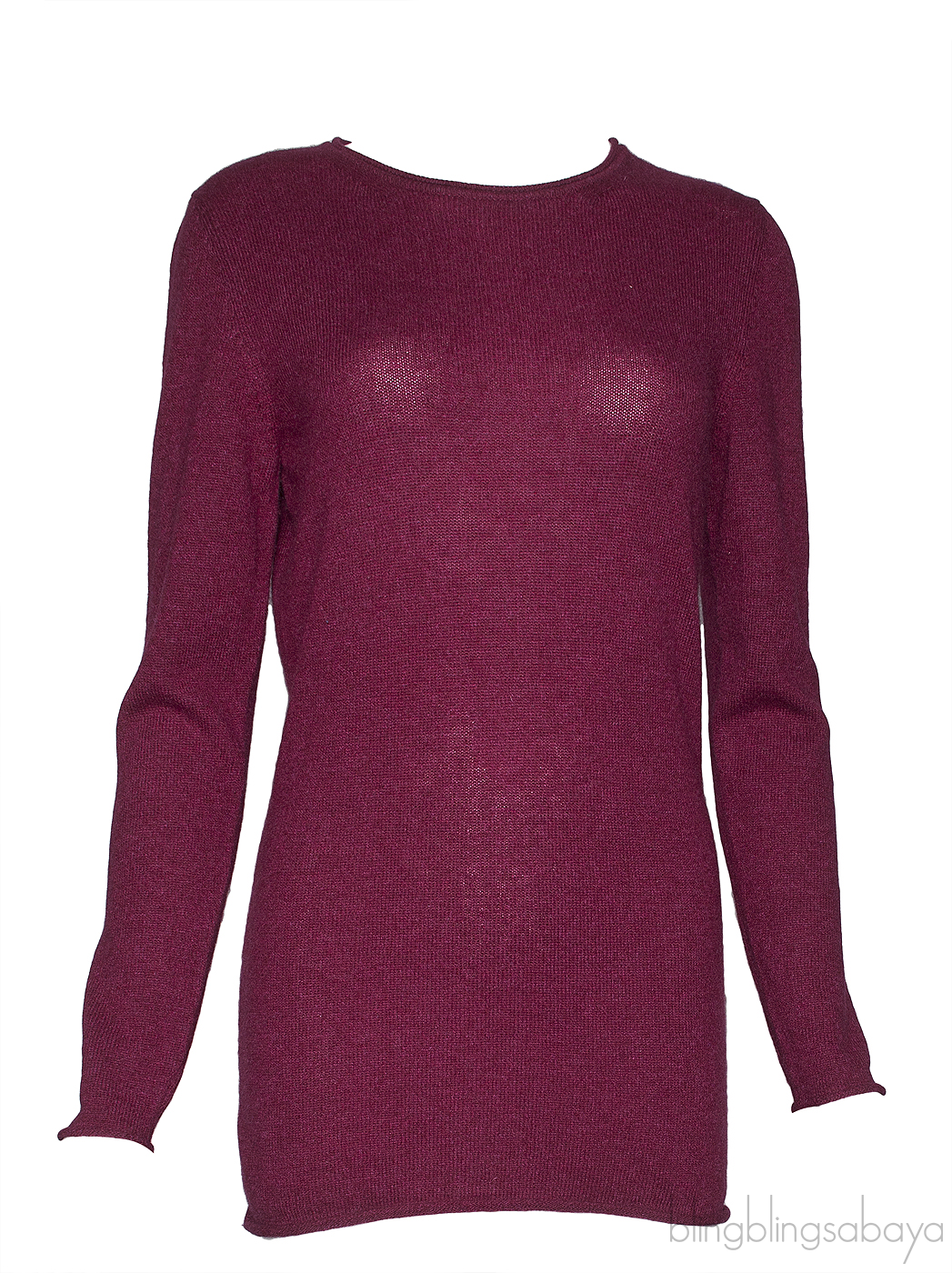 This Burgundy Cashmere Long Sleeve Shirt from Franck Namani is crafted from 100% Cashmere featuring a round neckline, long sleeves, pull-over style stretch in burgundy hue and raw edges
