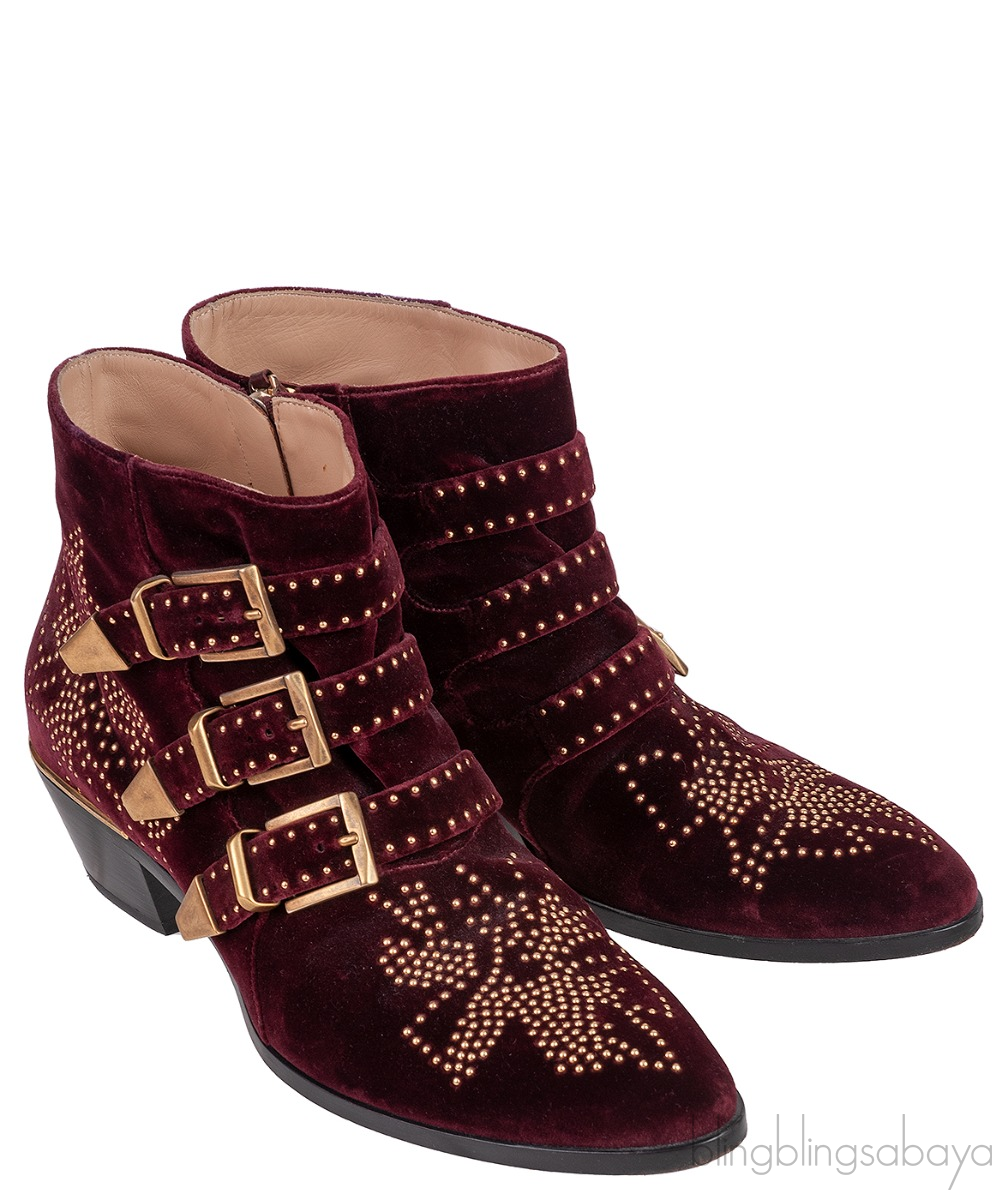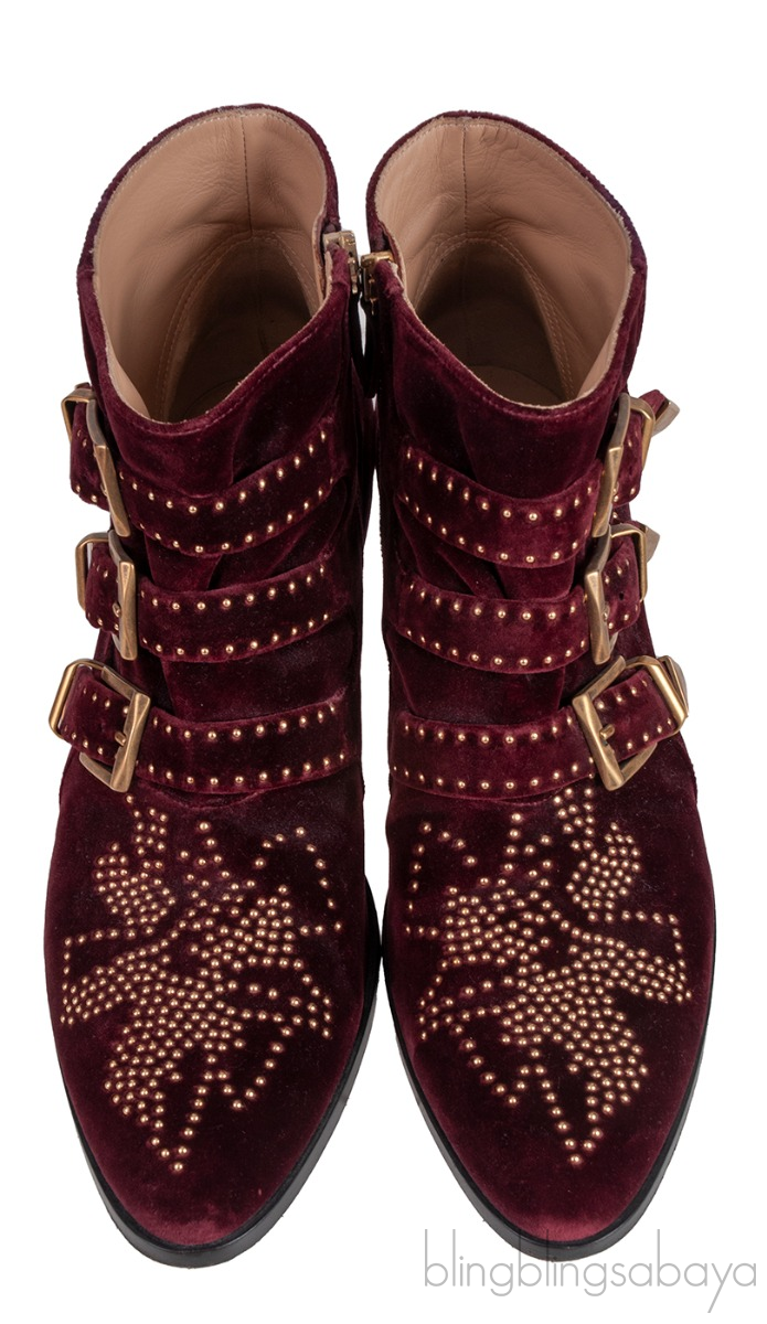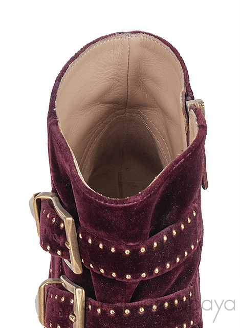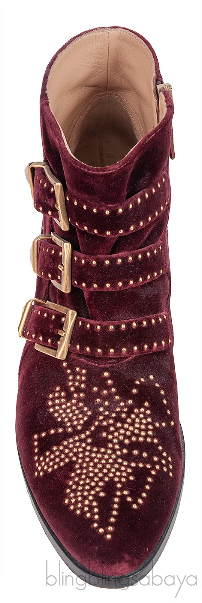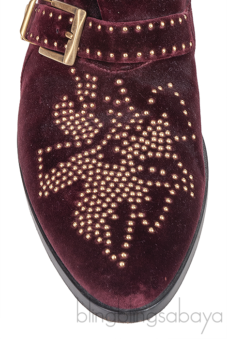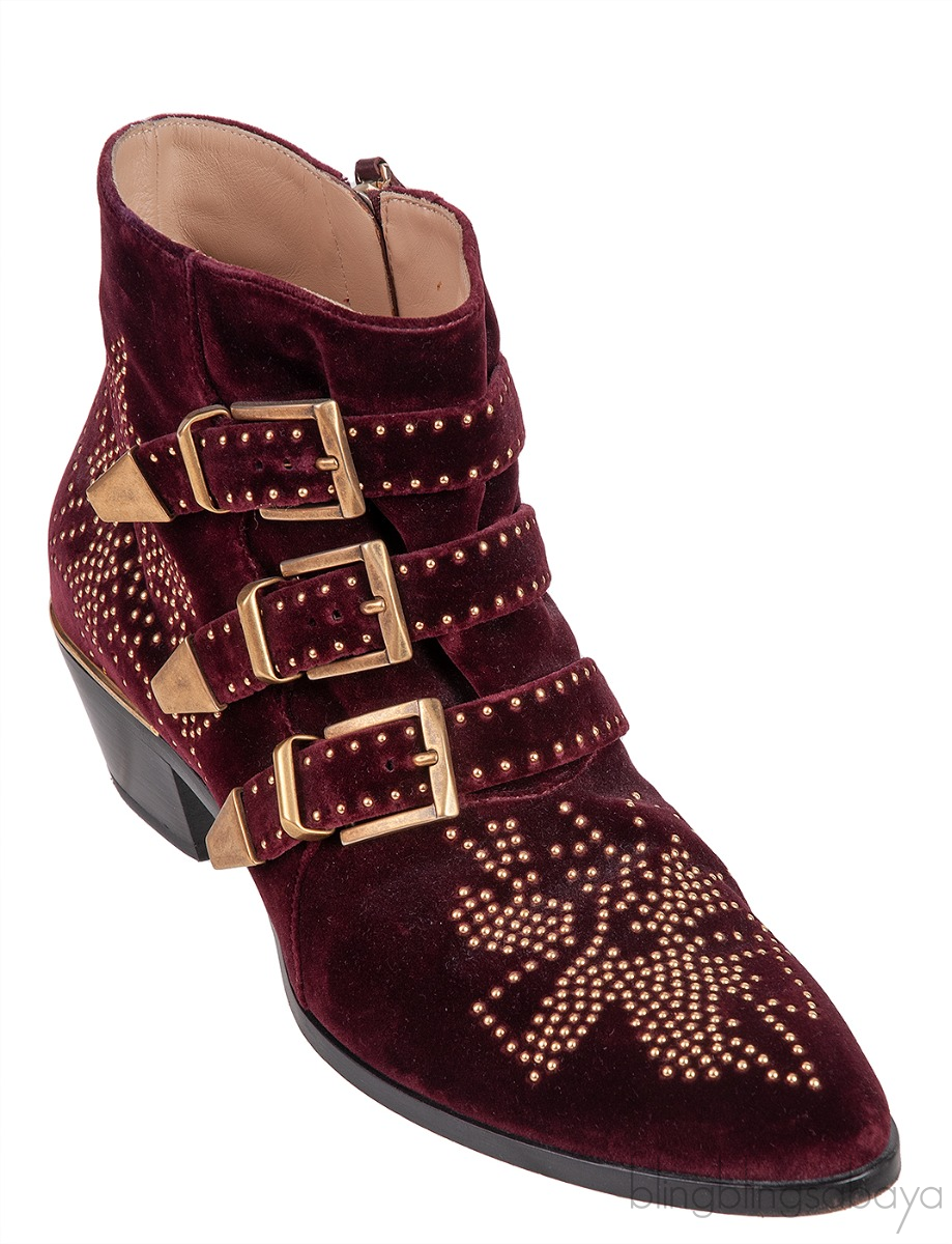Burgundy Velvet Metal Beads Strappy Boots from Chloe!