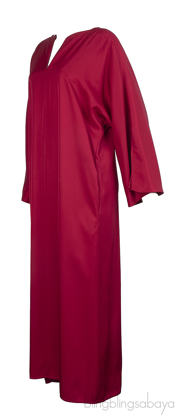 This By Malene Birger Burgundy Caftan Dress is crafted from 100% Acetate fabric in burgundy hue. This dress features a v-neckline, long caftan sleeve, oversize design, pull-over, side slit and mid-length hem.