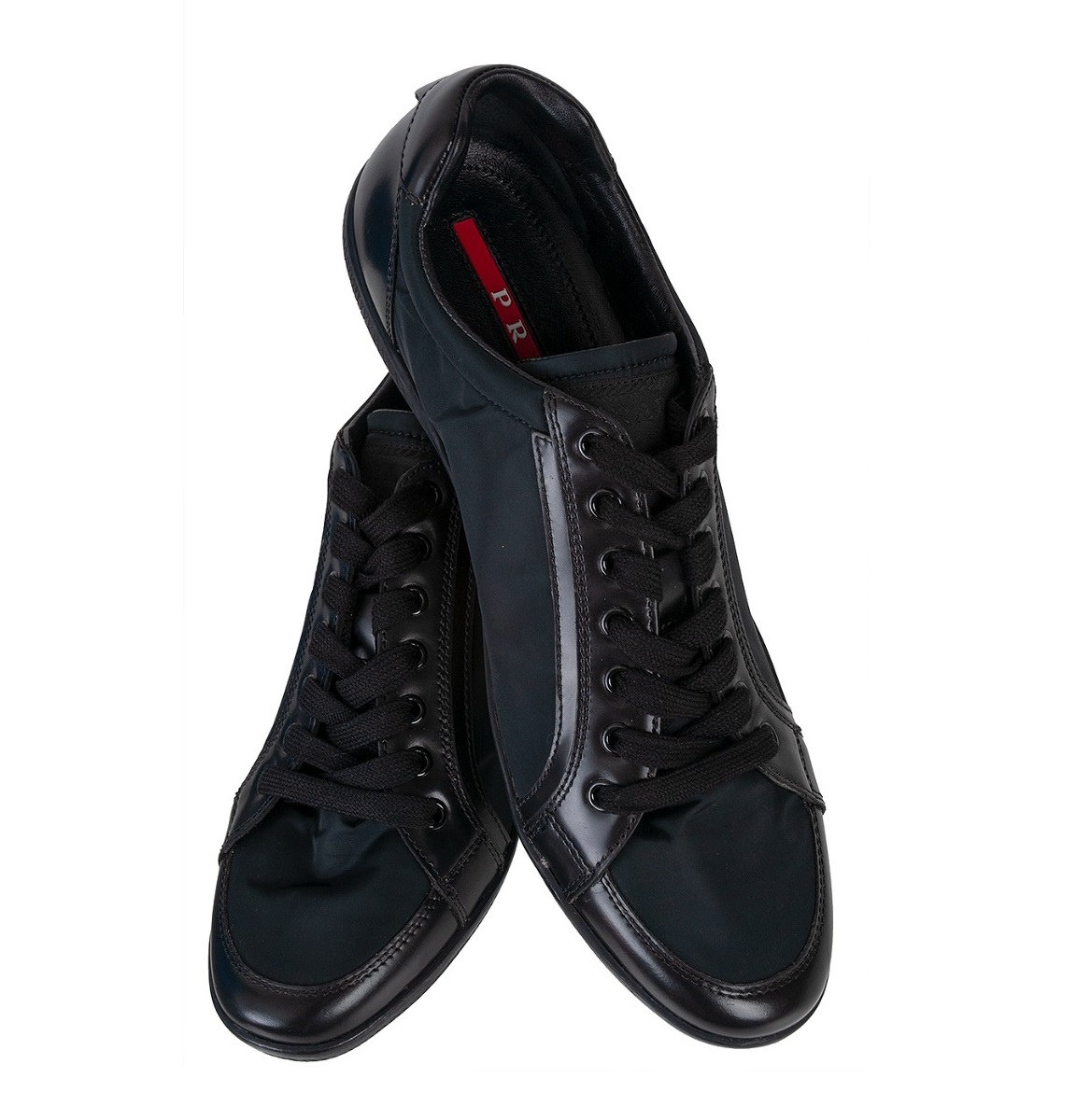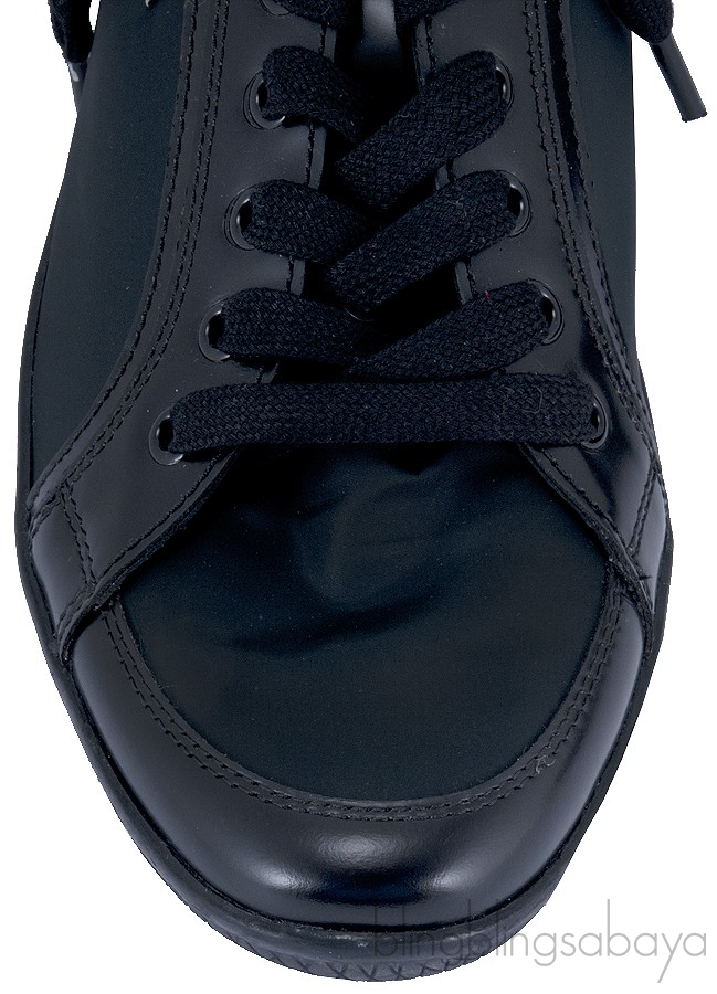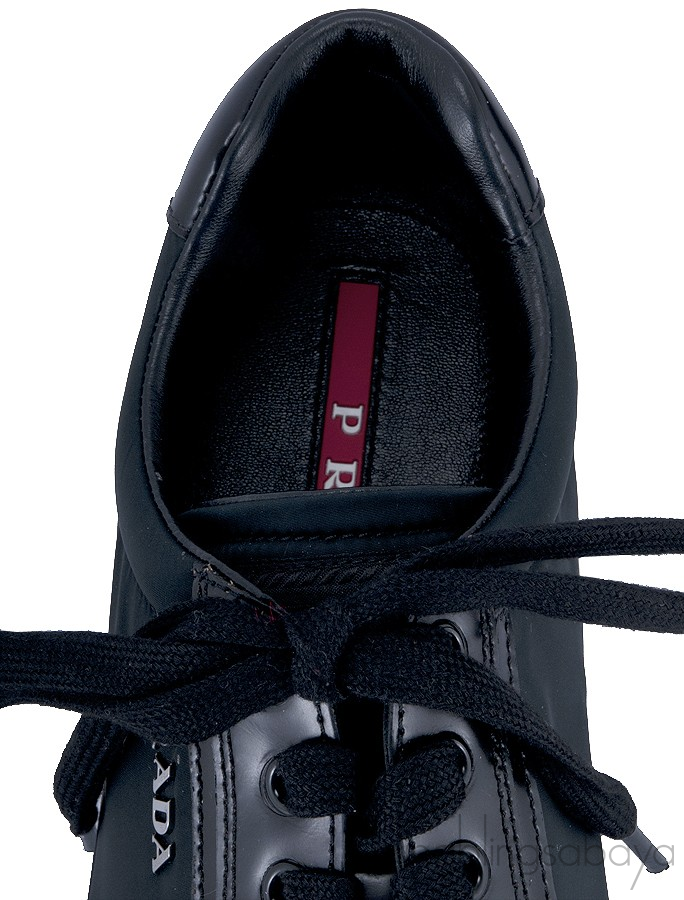 This Calzature Donna Black Sneakers from Prada is crafted in Black Nylon Fabric upper with leather trimming. This features a lace up closure with with 8 pairs of eyelets, round toe, metal logo2, fabric lining, padded insole and rubber sole.