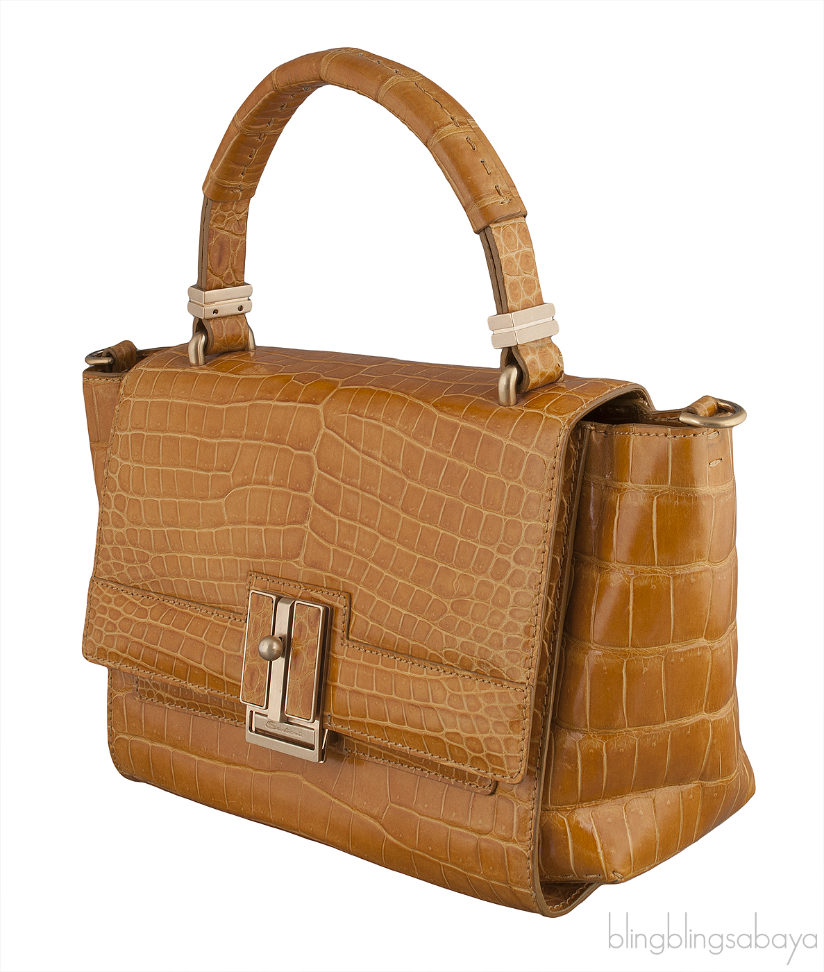 Camel Brown Crocodile Handbag from Santoni!