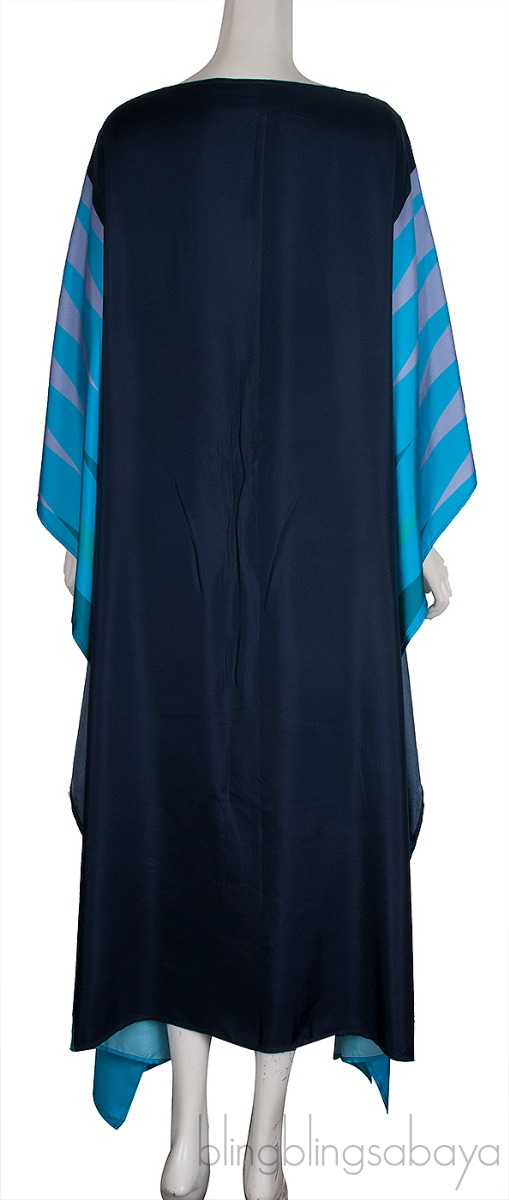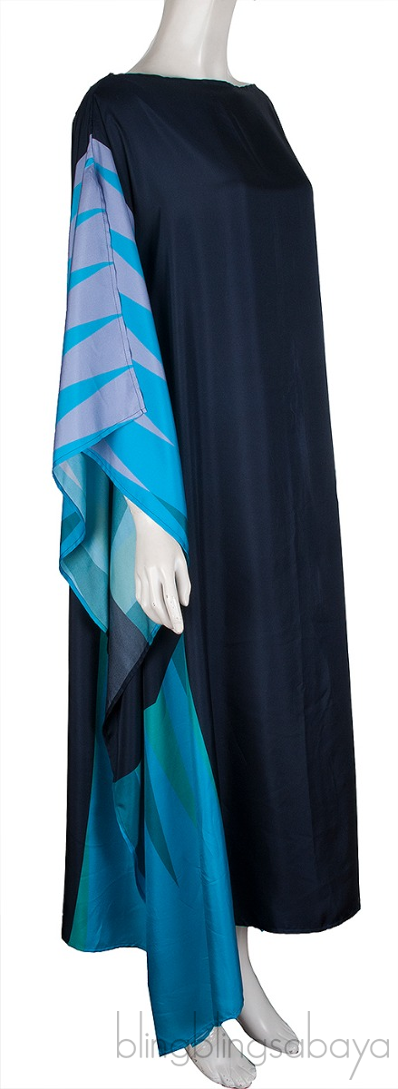 This Campbell Multicolored Scarf Dress is crafted from 100% Silk fabric in multicolor hue. The dark blue piece, The navy silk piece is enhanced with a turquoise and mauve print on the draped sides, is cut in a simple scarf dress shape with a boat neck.