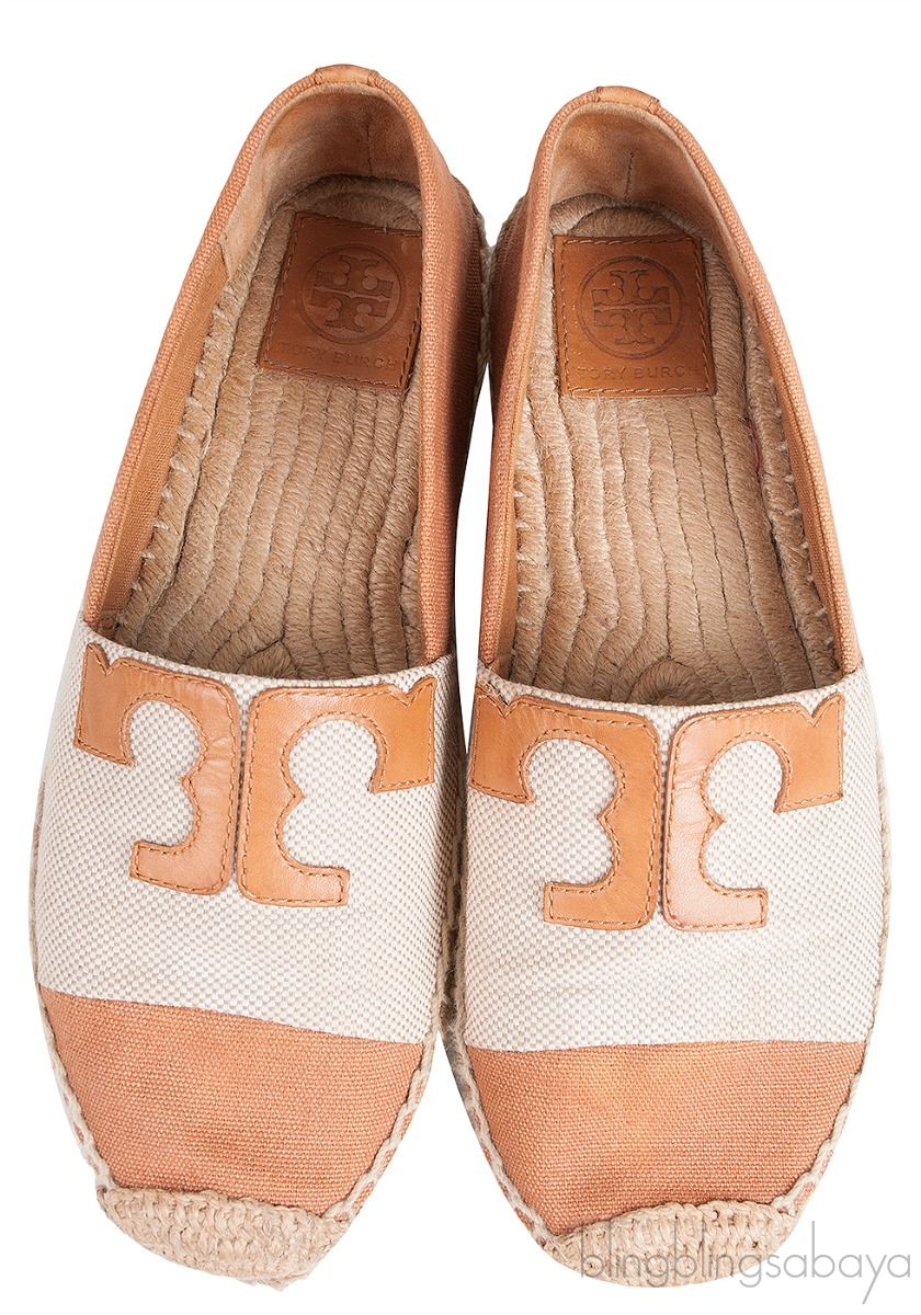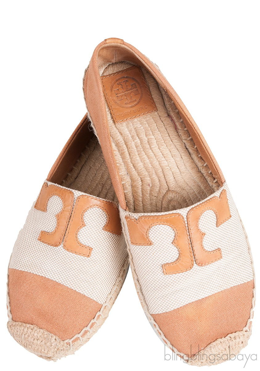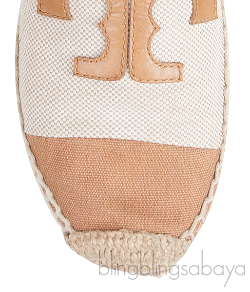 These Canvas Bi-color Espadrille from Tory Burch are made of brown and beige canvas upper. These espadrille features a brown leather logo2 at the vamp, almond toe, raffia insole and rubber sole.