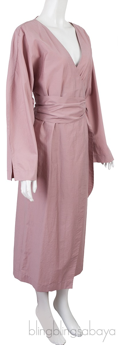 This Canyon Open Back Wrap Dress from Nanushka is crafted from 85% Cotton and 15% Nylon. This dress features a wrap design at front with unexpected cutout back, long sleeves has a wide, waist-cinching belt.