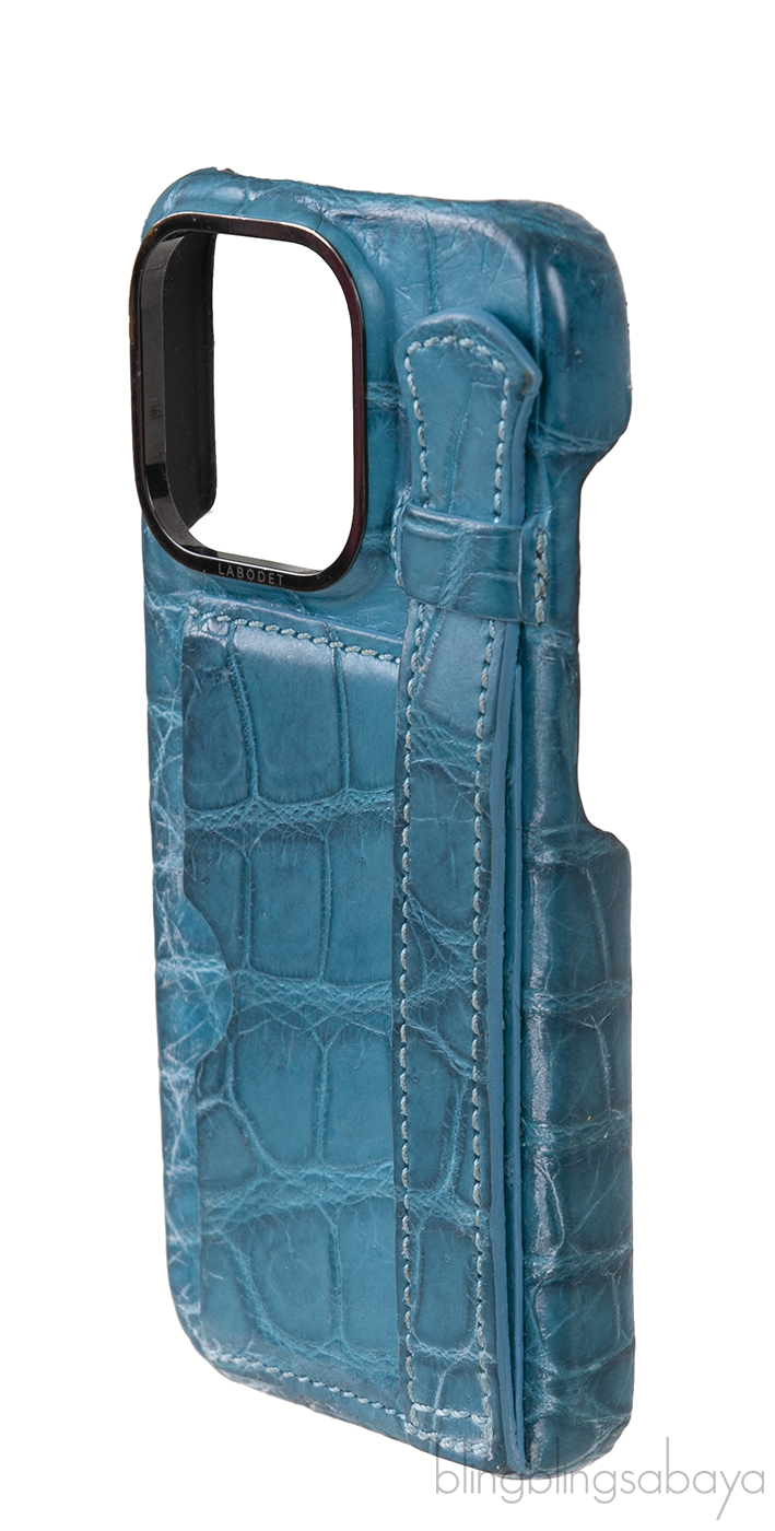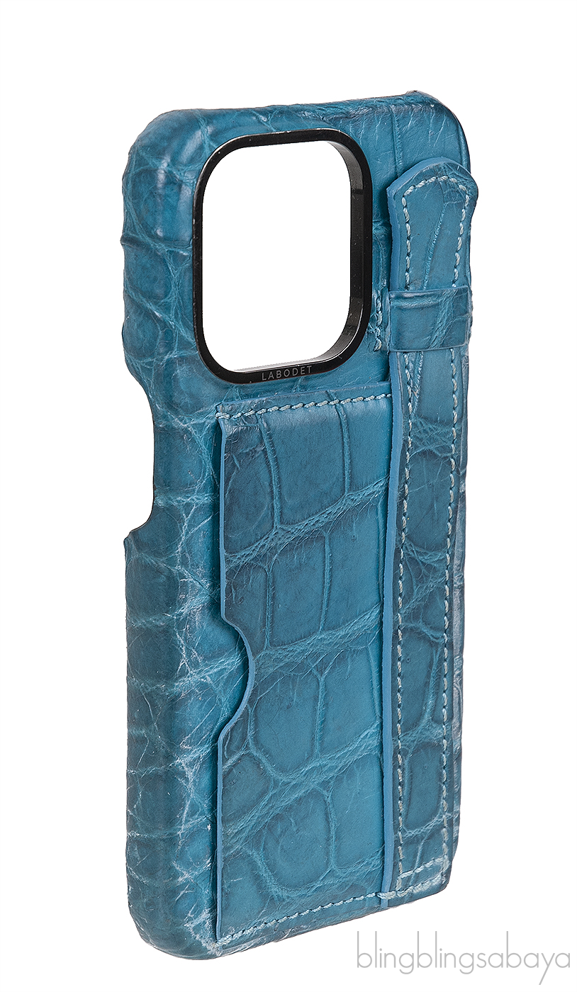 This Card Holder Strap Iphone 15 Case Alligator Forest Green from Labodet is crafted from forest green alligator skin with alcantara micro fiber lining. This iphone case is designed with slot at back to carry your most essential card and has the convenient strap.