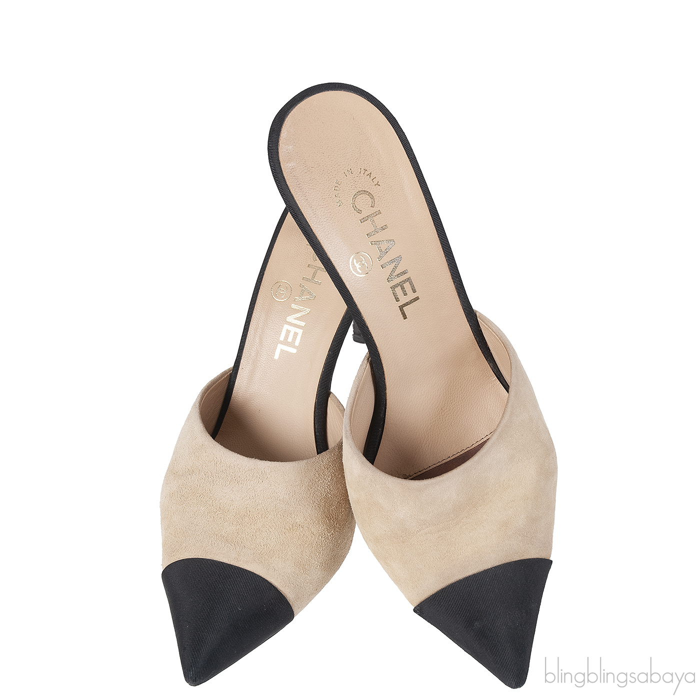 CHANEL BEIGE AND BLACK SUEDE POINTED MULE