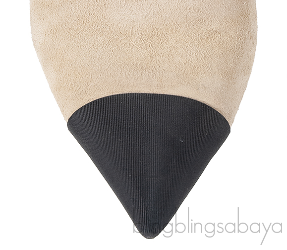 These Chanel Beige and Black Suede Pointed Mule are crafted from beige suede upper leather and black fabric with leather lining. These heels features a bi-color hue with pointed black cap toe, leather lined insole and sole, heels measuring 90 mm high with CC pearl.