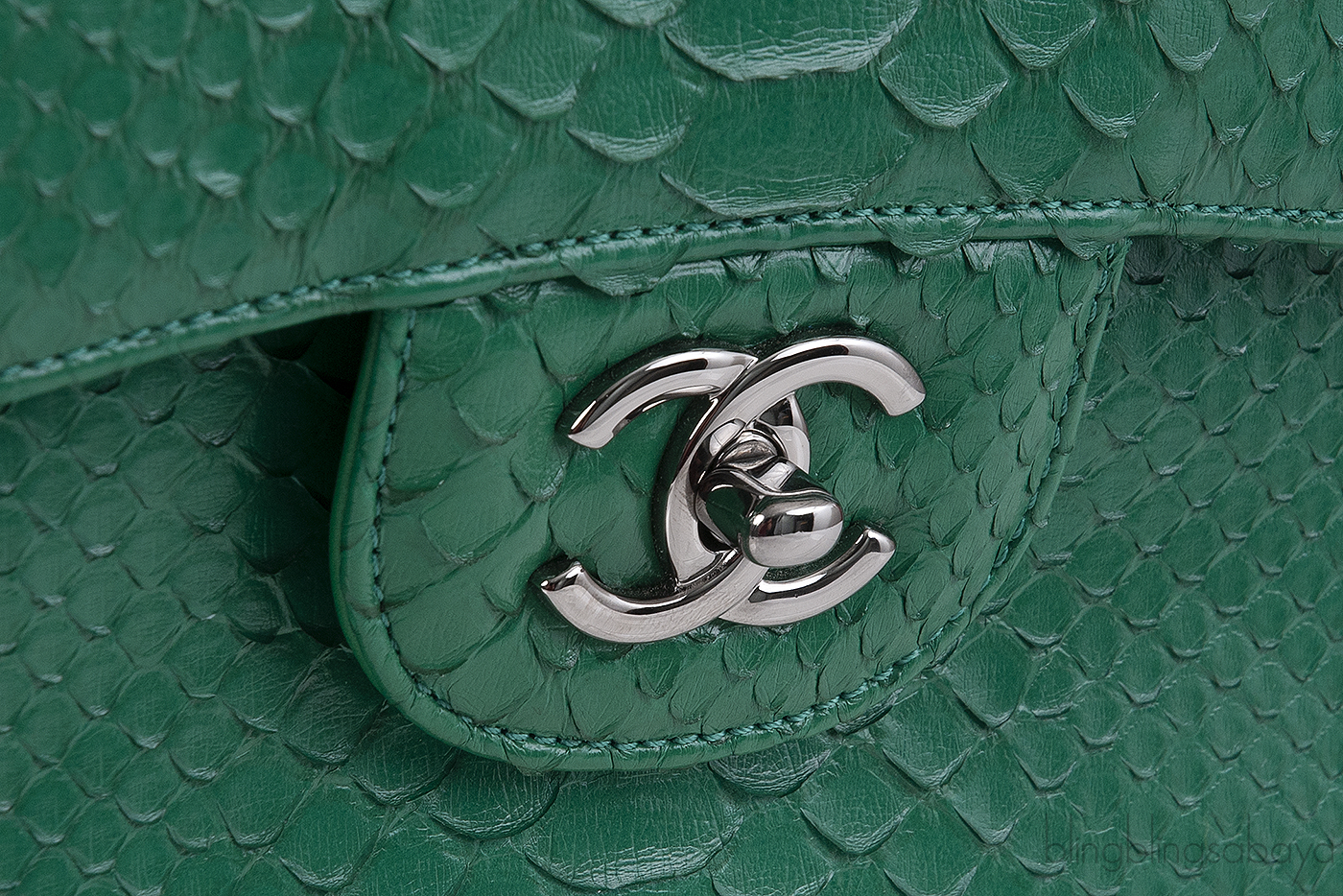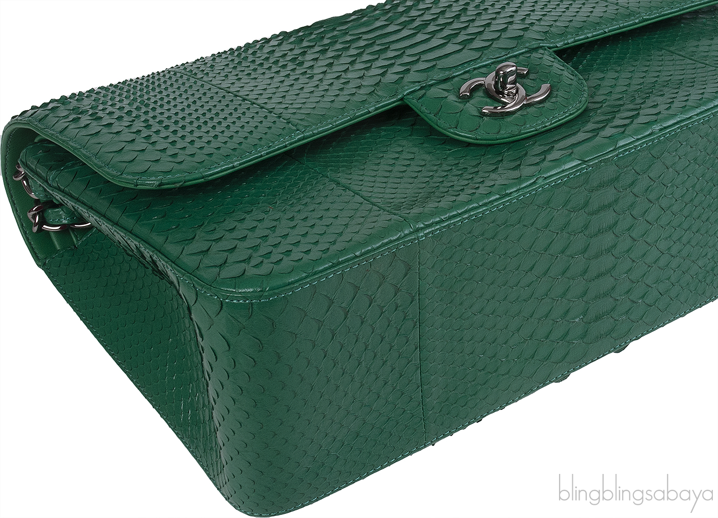Classic Jumbo CC Emerald Green Python Flap Bag from Chanel!