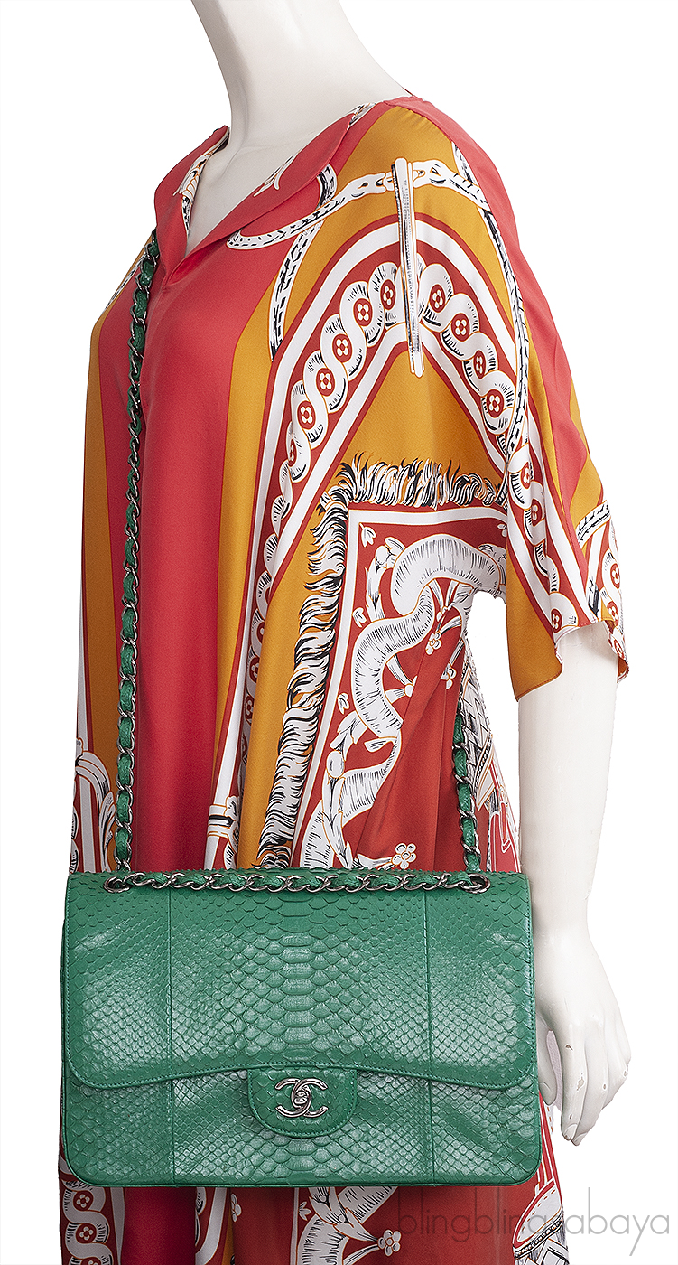 Chanel Classic Jumbo CC Emerald Green Python Flap Bag