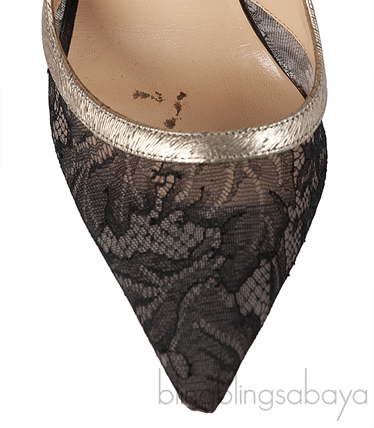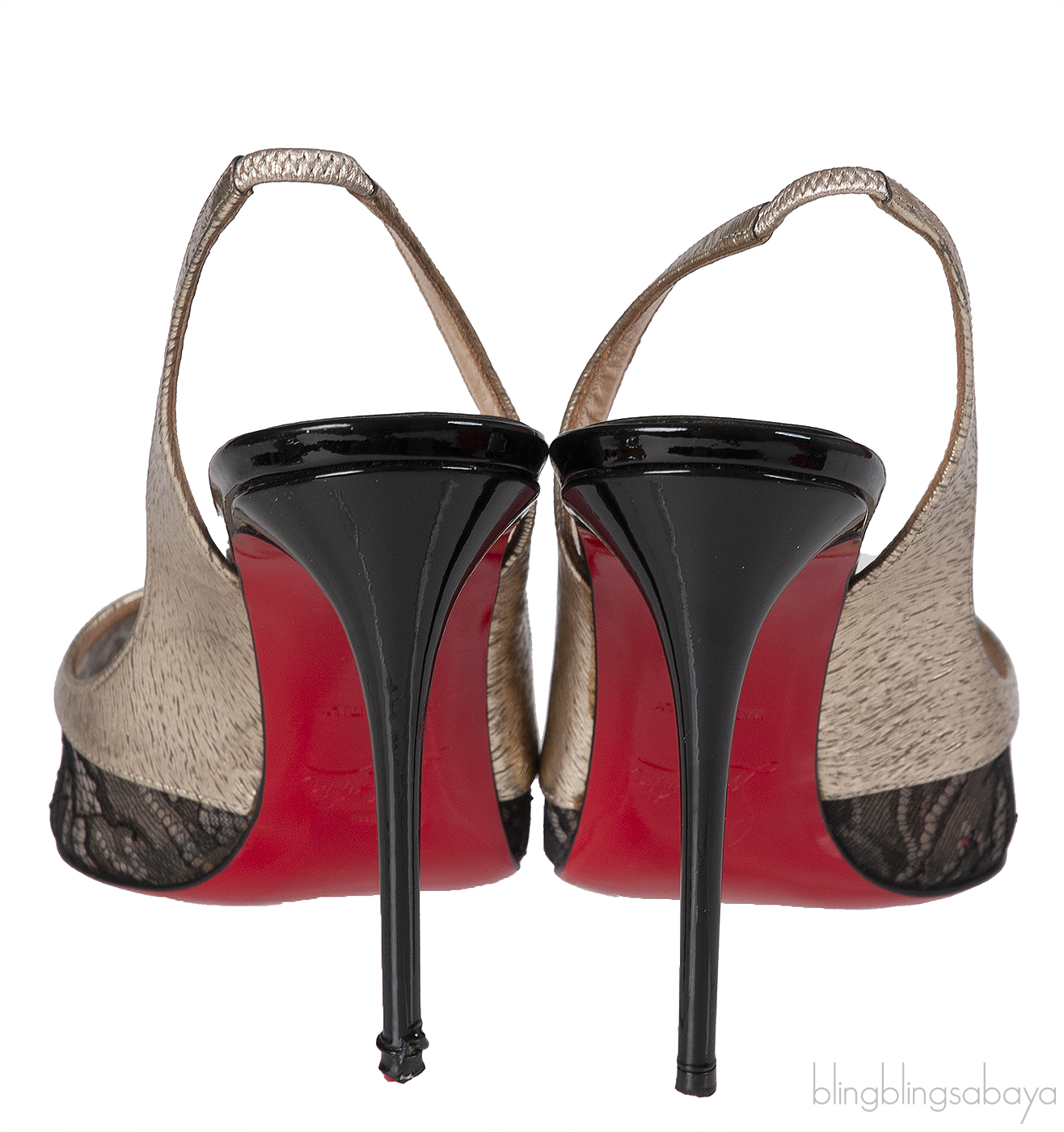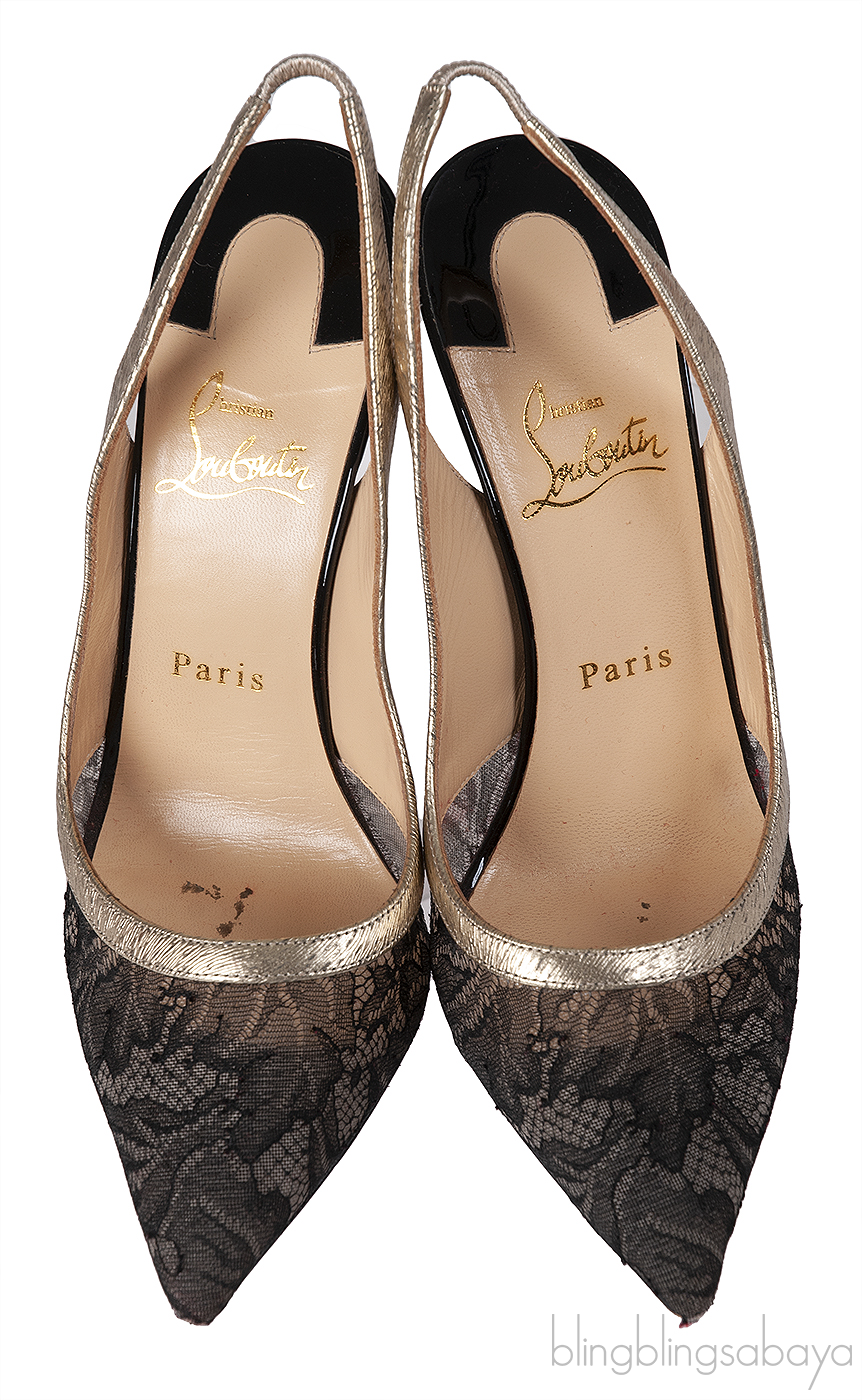 Black Floral Lace Gold Trim Slingback Heels from Christian Louboutin!