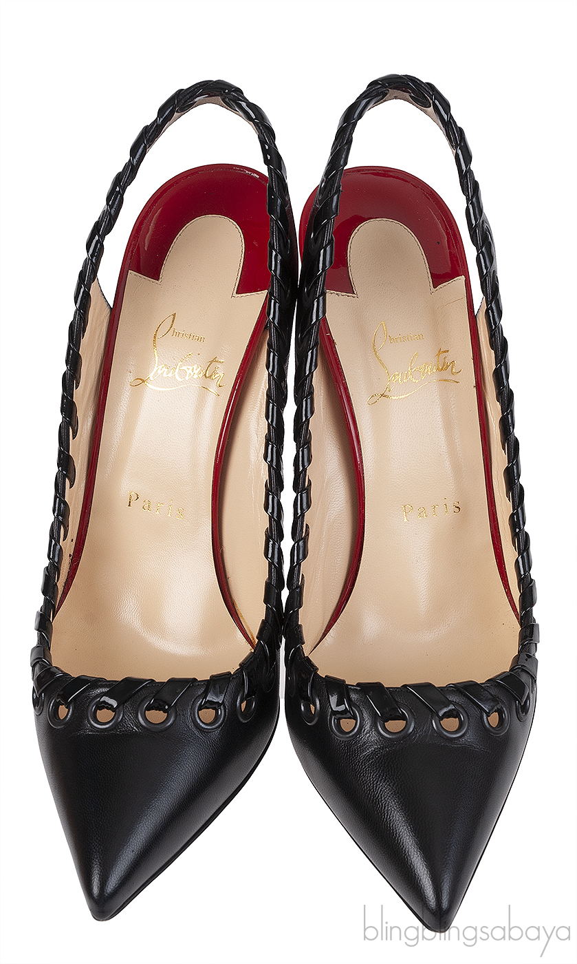 Black leather Ostri Sling 100 Heels from Christian Loubountin!