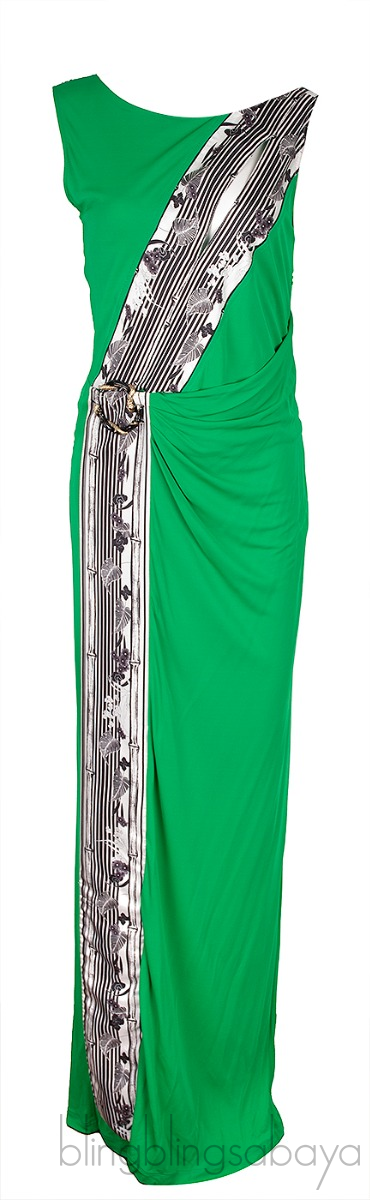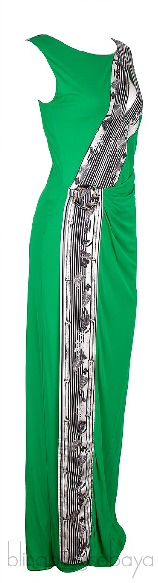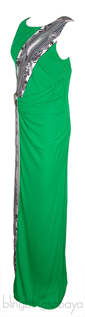 This Green Sleeveless Printed Dress from Class Roberto Cavalli is crafted from 100% viscose fabric features a round neckline and v-neck at back, sleeveless, black floral print at front with serpent buckle, gathered skirt, keyhole at chest, zip fastenng on the side and maxi length.