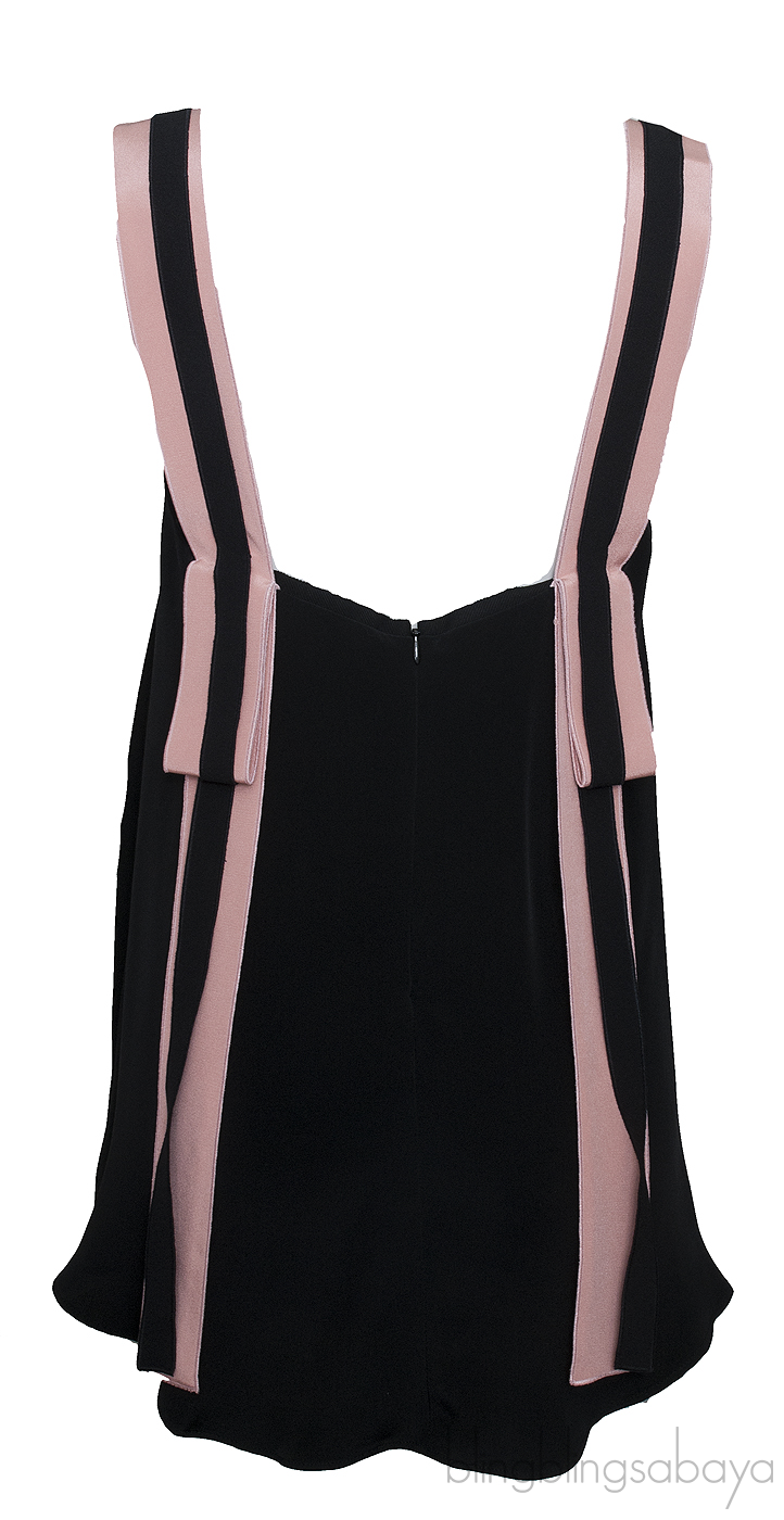 This Contrasting Strap Flared Top from Roksanda is made from 95% Silk and 5% Acetate; 100% Silk Lining. This top features a black silk too with flared design and has contrasting strap, concealed zip fastening at rear and square neckline.