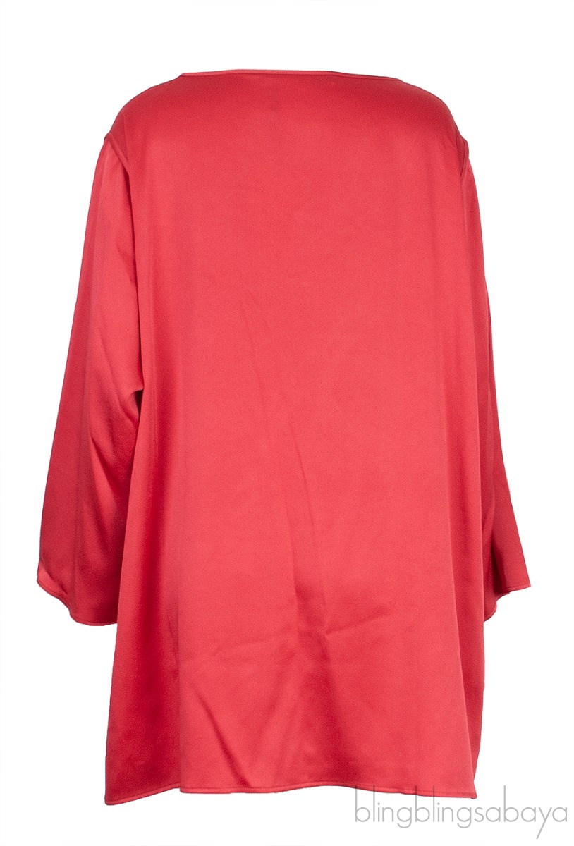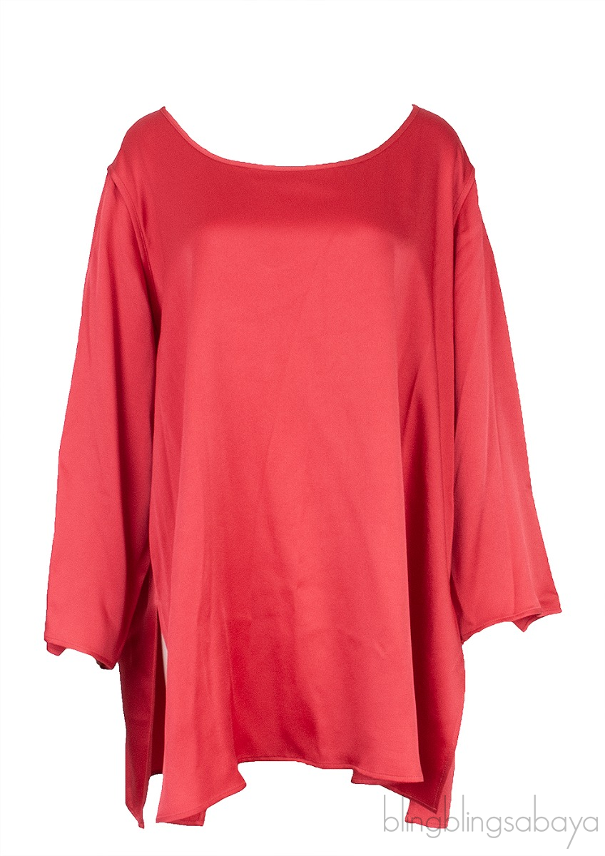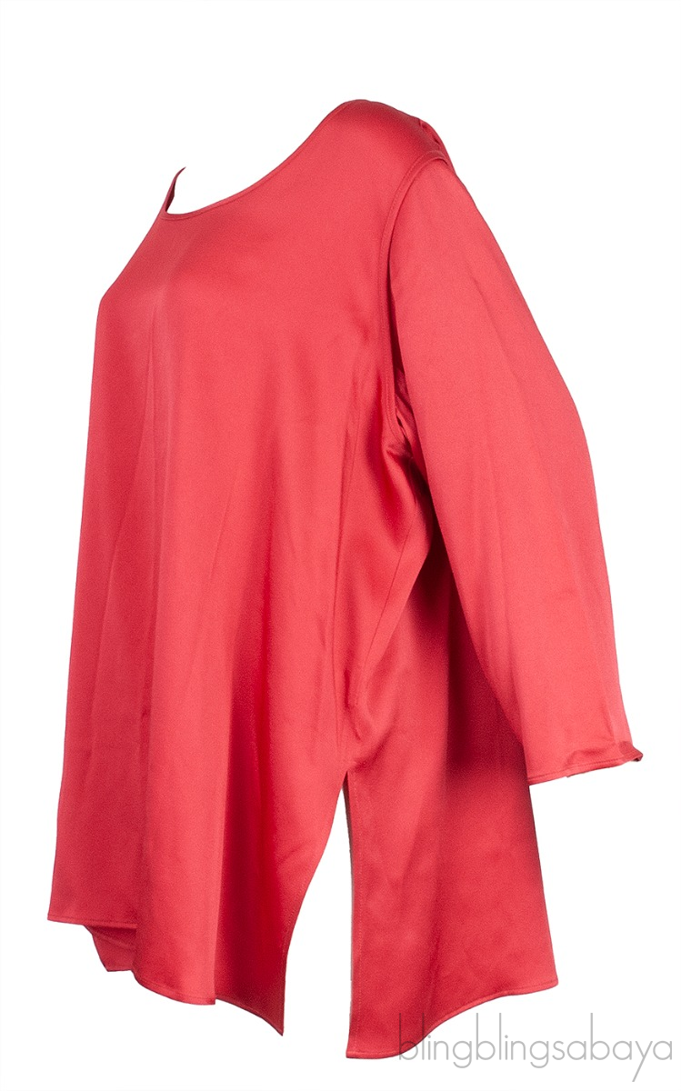 This Coral Barolo Shirt from Marina Rinaldi is crafted from 73% Acetate and 27% Viscose. This top features a scoop neckline, long sleeves, pull-over, and side slits on hemline.