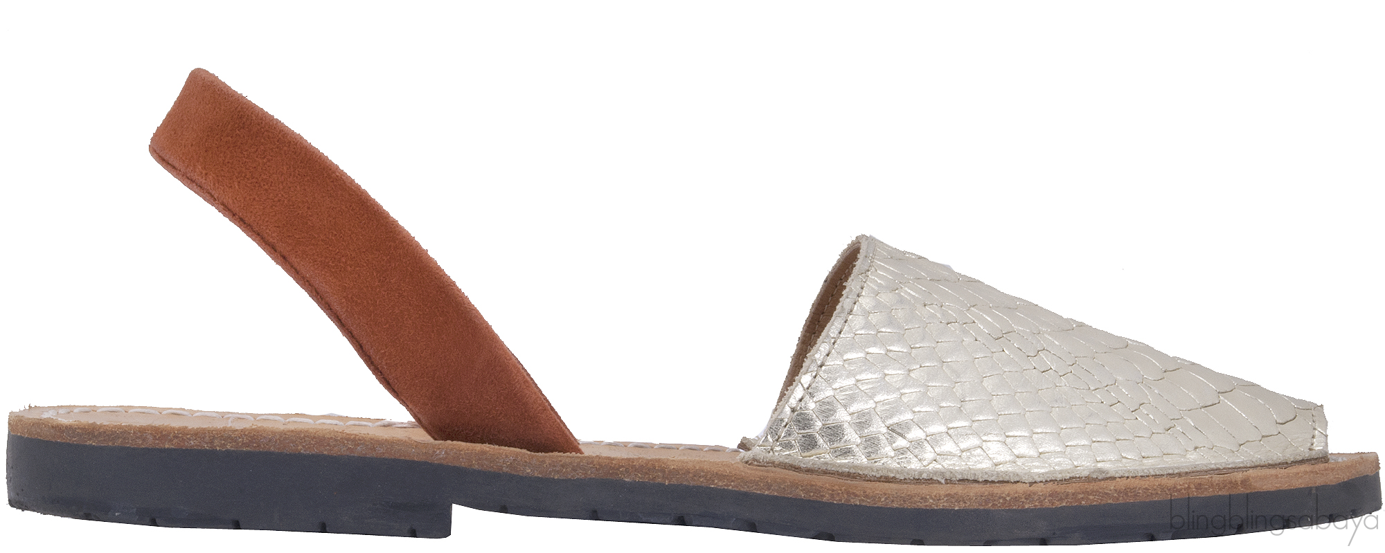 This Croc Embossed Leather Sandals from dR London features a light gold metallic crocodile embossed vamp, peep toe, brique leather sling back strap, leather insole and black rubber sole.