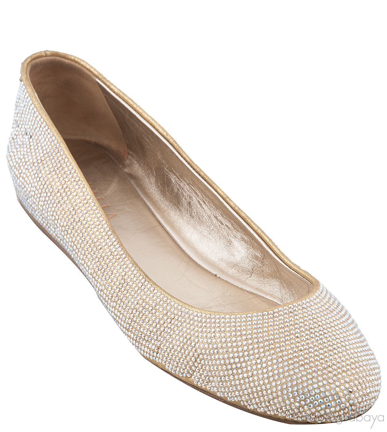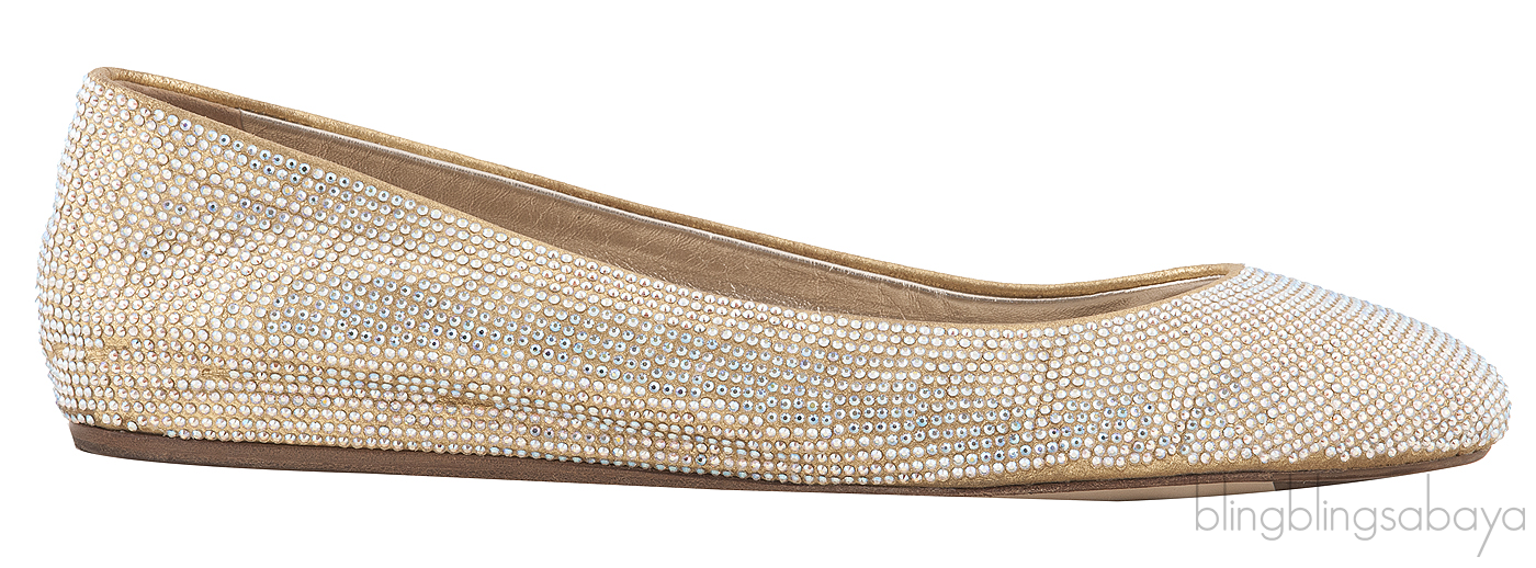 These Crystal Embellished Ballet Flat from Le Silla are made of crystal embellished upper with leather lining. These shoes features a round almond toe, light gold leather lining and leather sole.