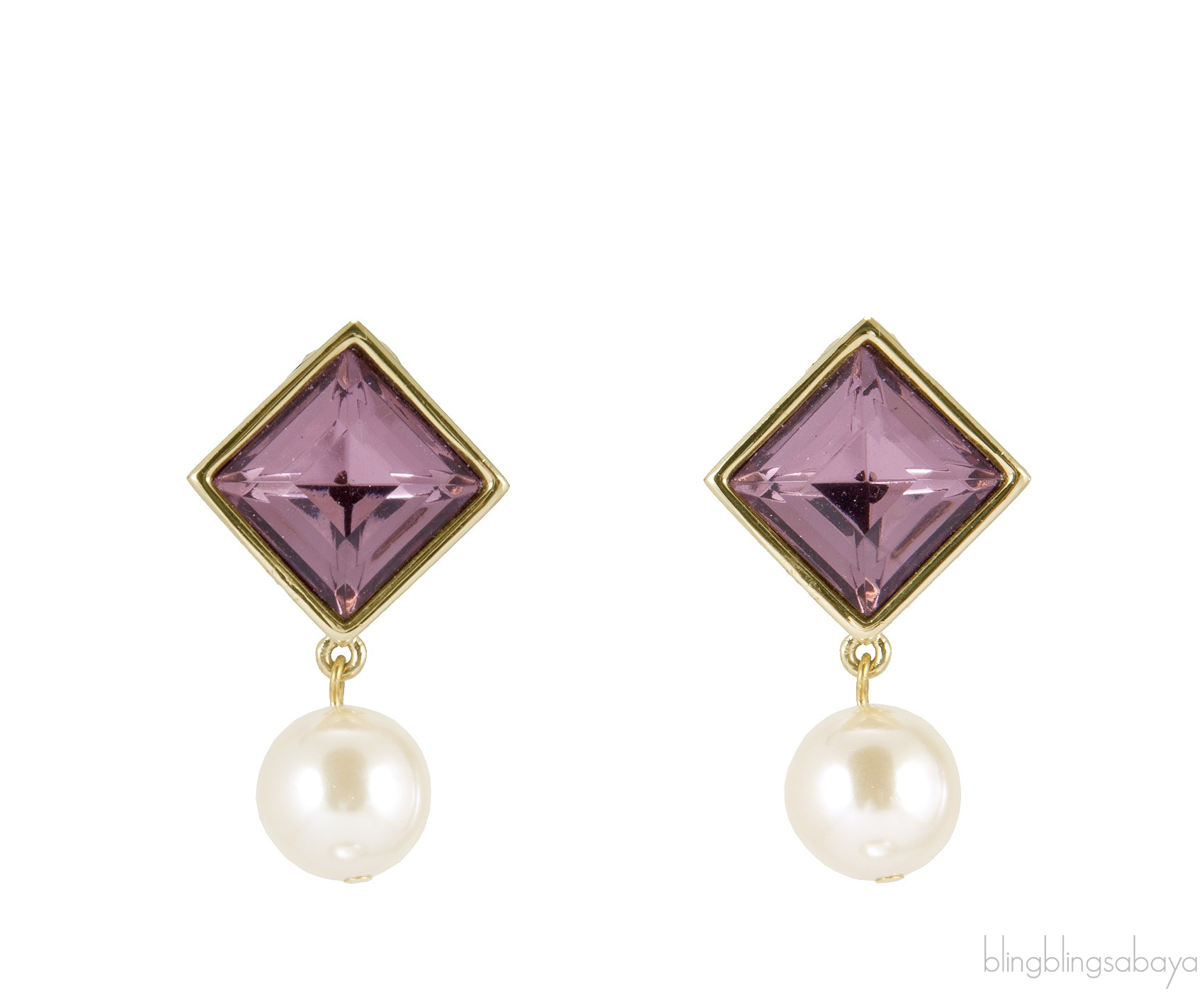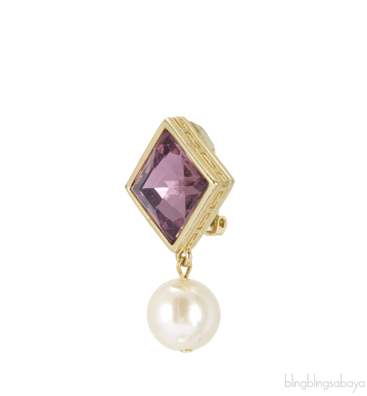 This Crystal Pearl Drop Earrings from Givenchy is made of light pink crytal in a gold plate metal settings with faux pearl drops and clip on closure. Drops at 4 cm / 2.5 cm width.