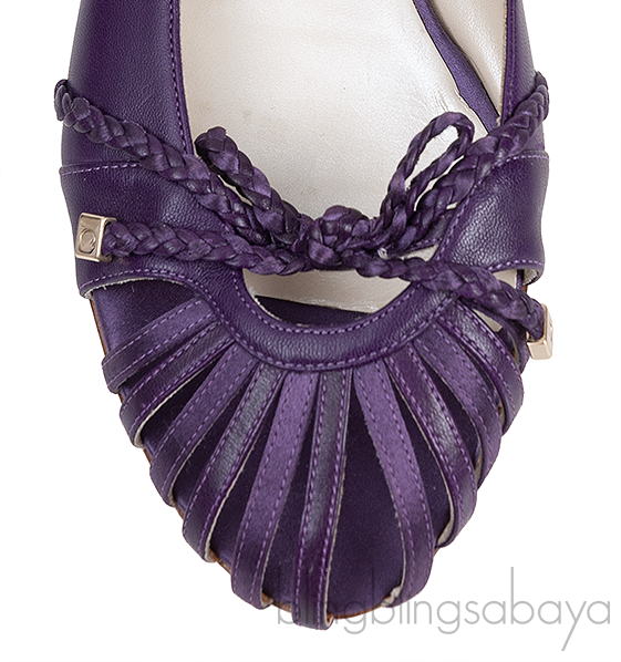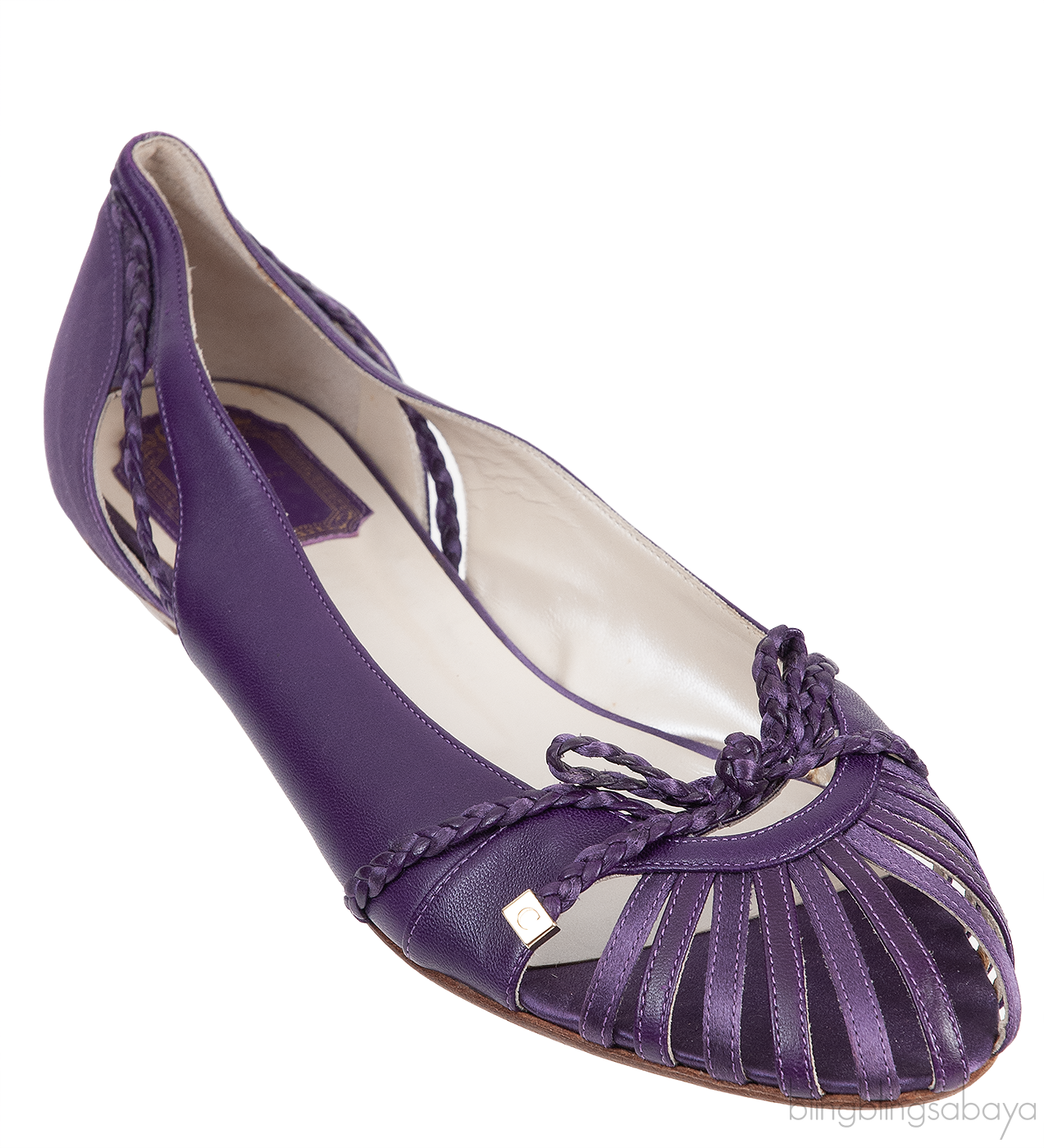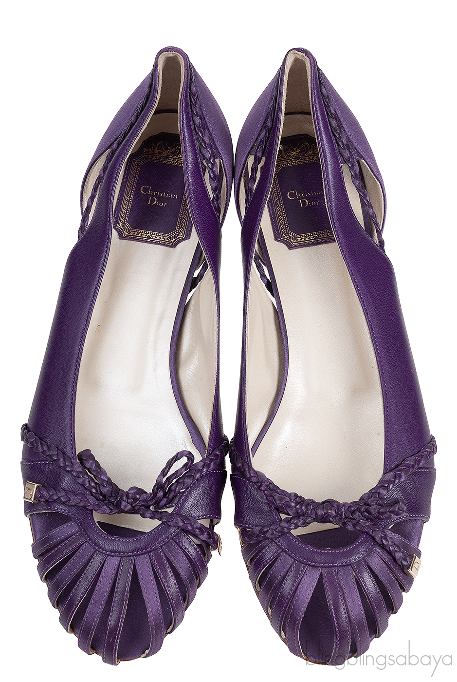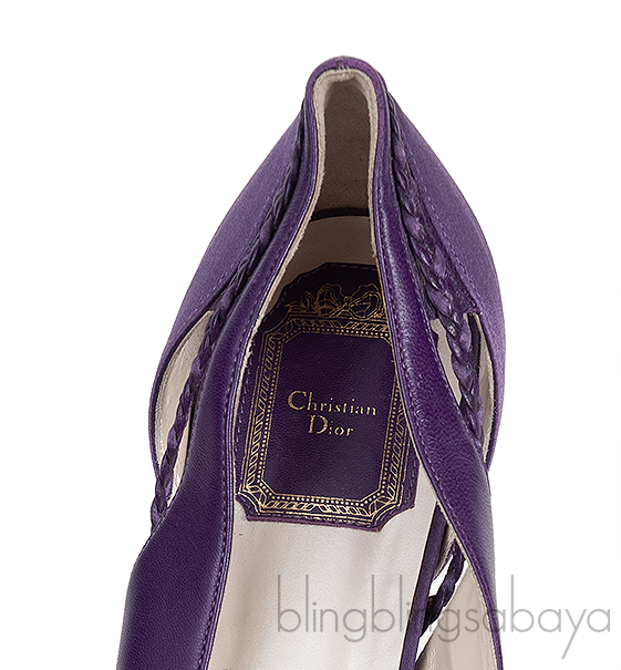 This casual chic Ballet Flat from Christian Dior is crafted in Leather and Purple Satin Fabric. This features a cut-out toes and back with braided satin detailing, braided satin bow on the vamp has C & D charms at the edge. Padded insole with Christian Dior logo2.