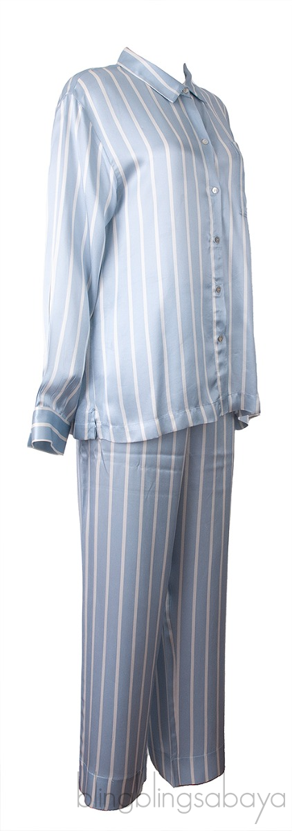 ASCENO Dust Blue Stripe Pajama Set*