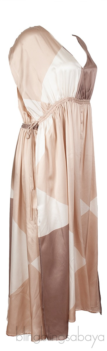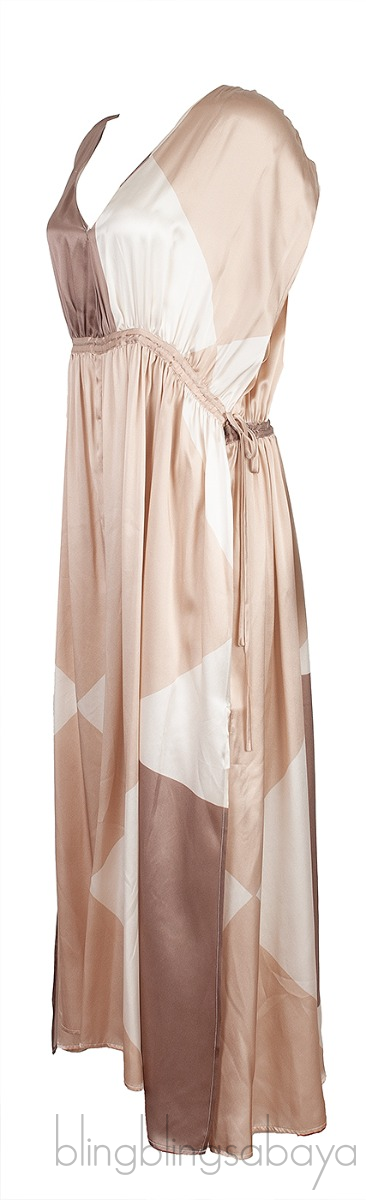 This Venezia Open-Back Silk-satin Dress from Enevelope1976 is crafted from 100% Silk fabric in multicolor hue. This dress features a deep v-neckline at front & back, ruched design at waist with drawstring fastening, self-tie fastening at rear, midi length with long slits on the side.