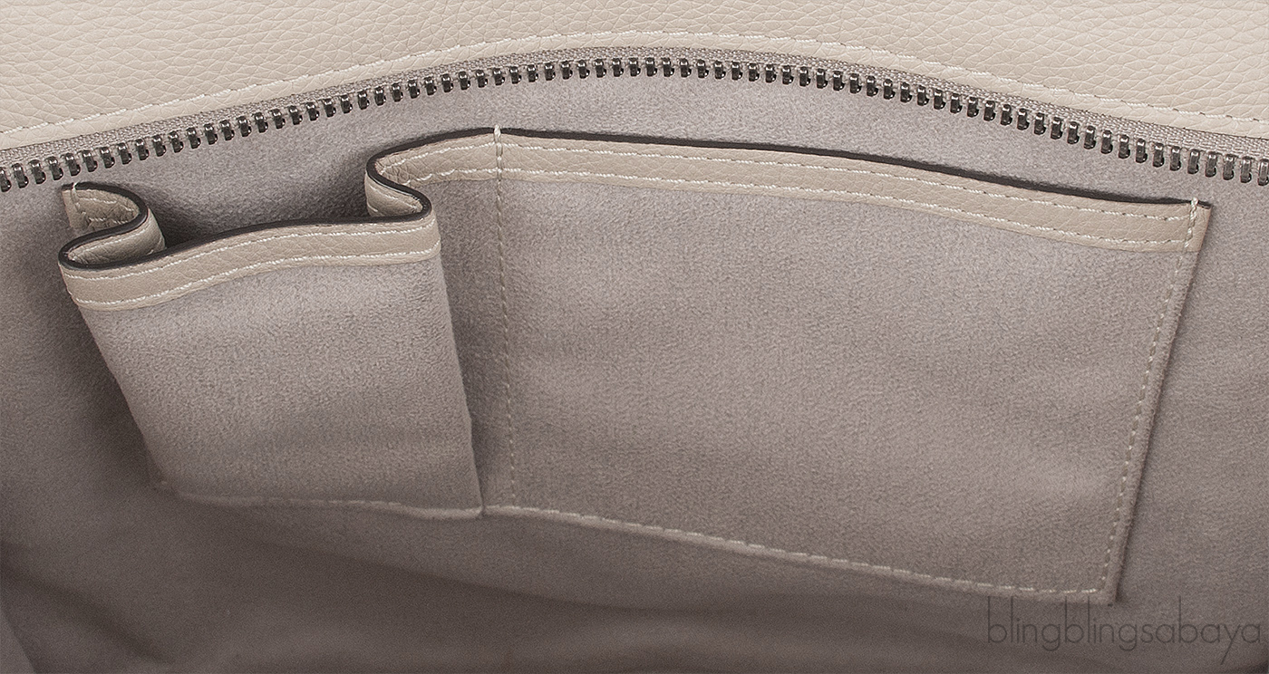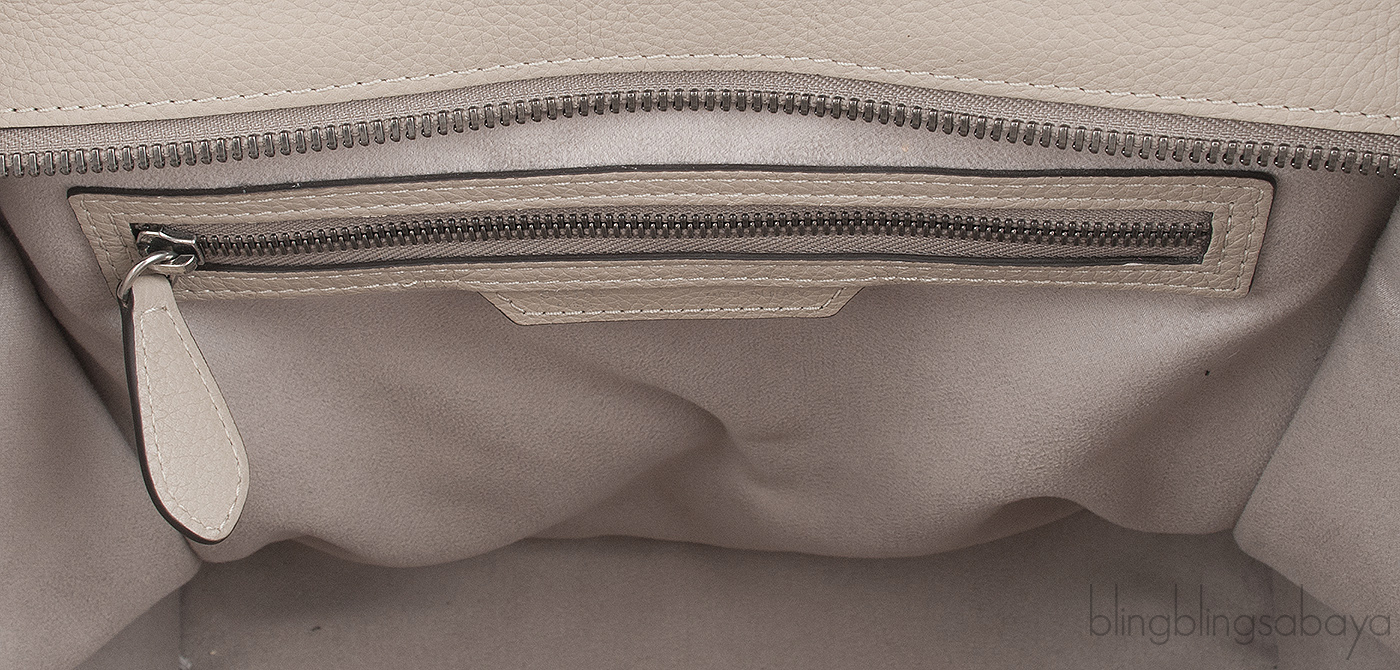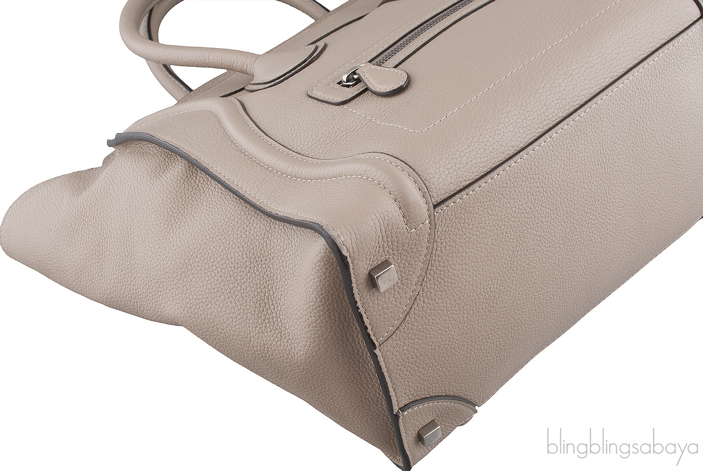 This Etoupe Mini Luggage from Celine is crafted from etoupeCalfskin leather with a Silver Hardware. It has a vertical ridge on both sides that adds a stunning characteristic on front and rear of this lovely bag.
