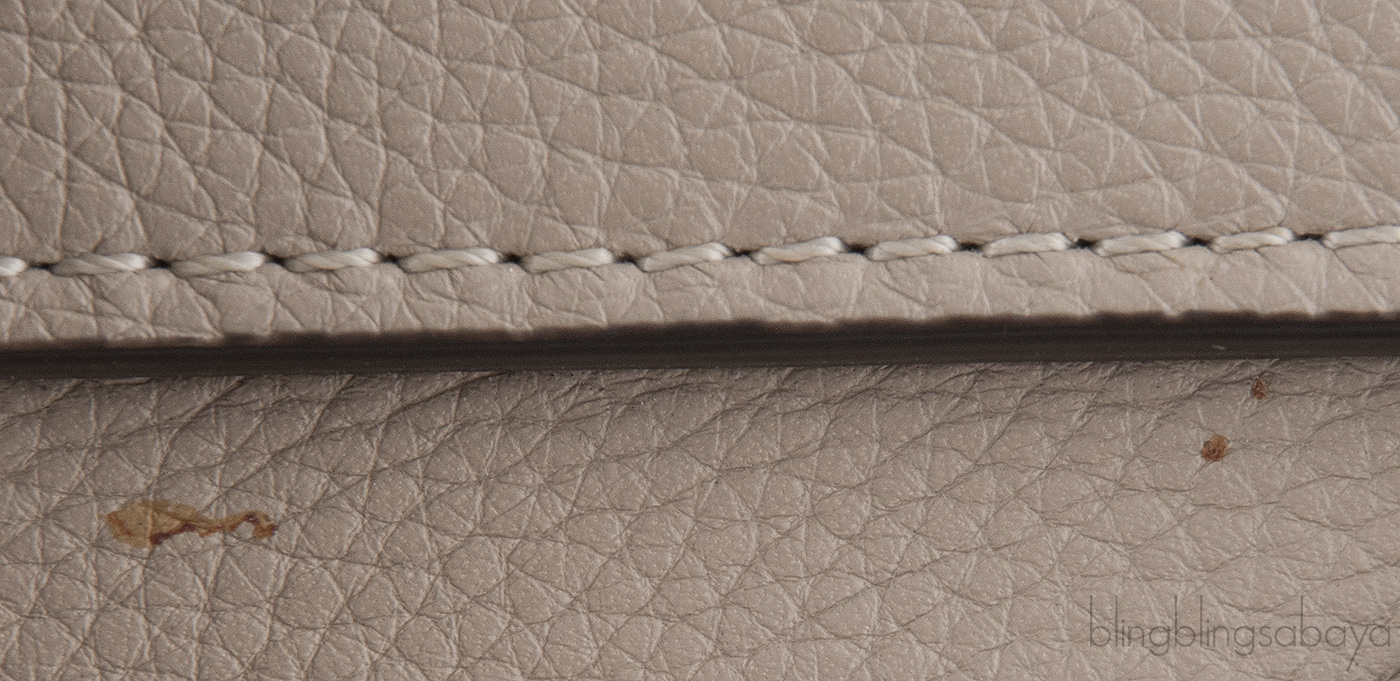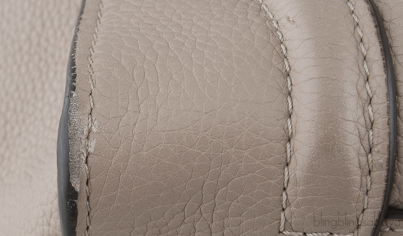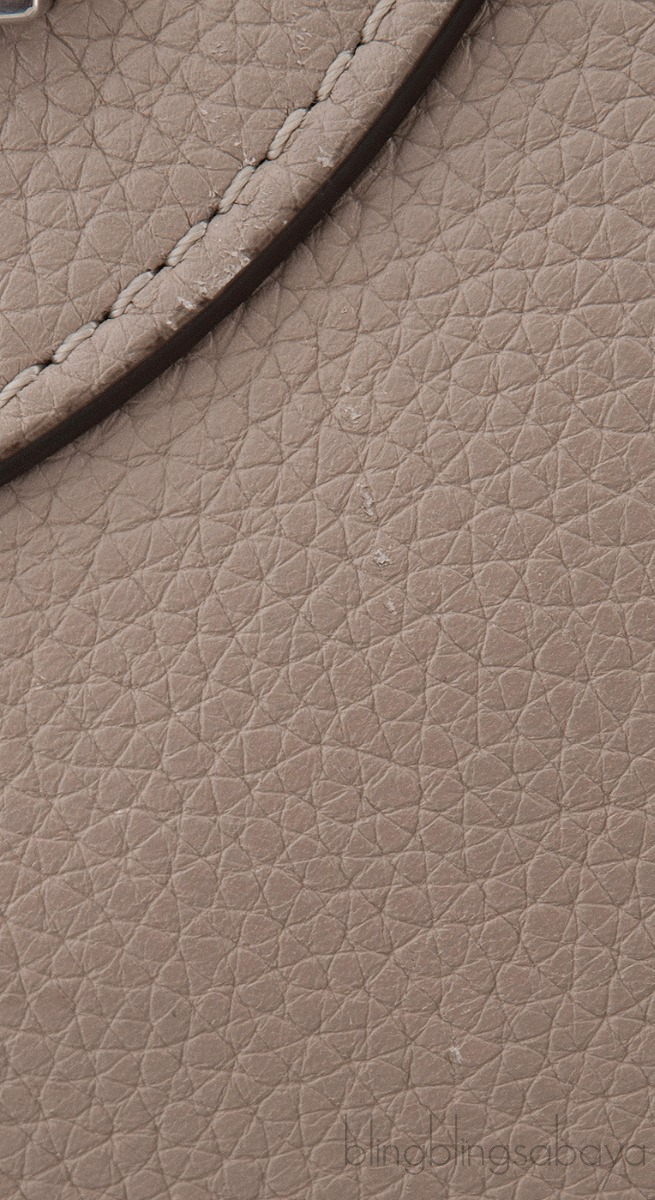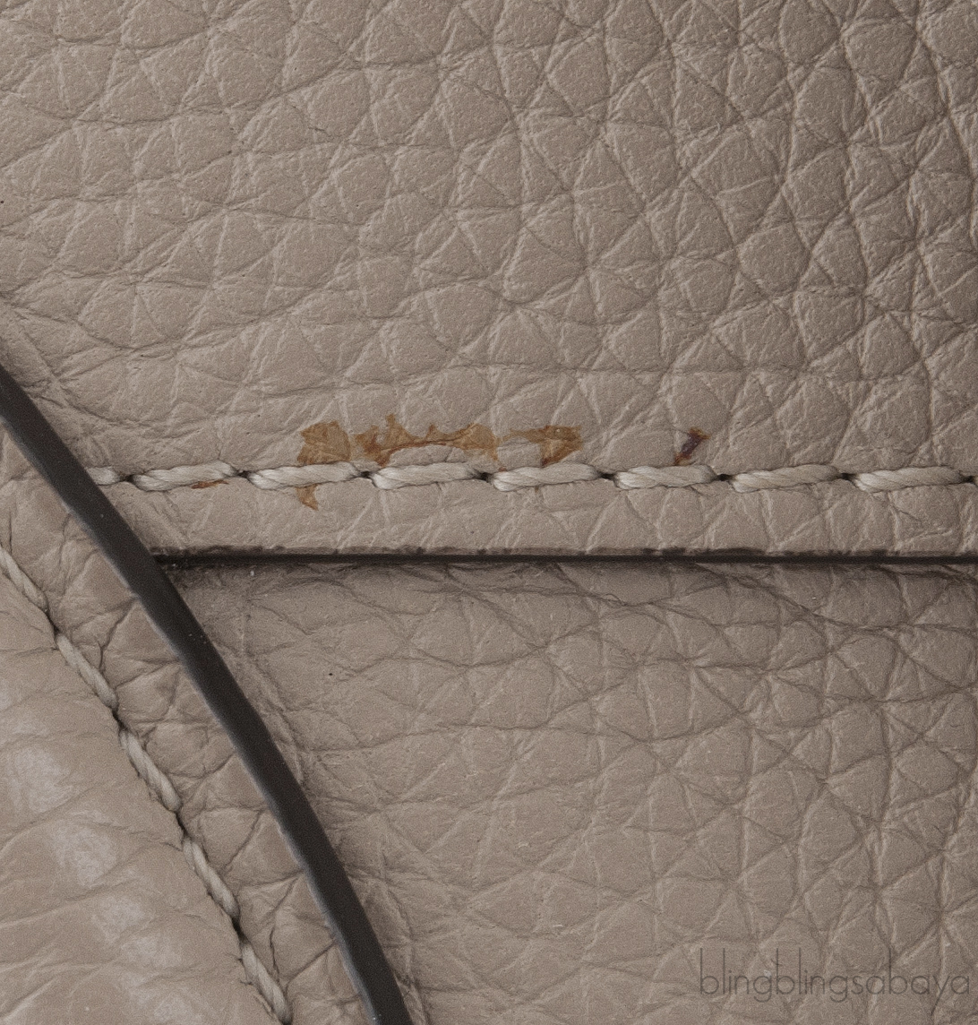 This Etoupe Mini Luggage from Celine is crafted from etoupeCalfskin leather with a Silver Hardware. It has a vertical ridge on both sides that adds a stunning characteristic on front and rear of this lovely bag.