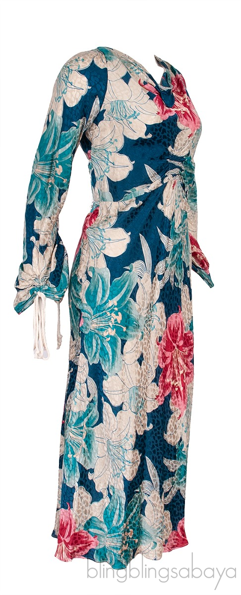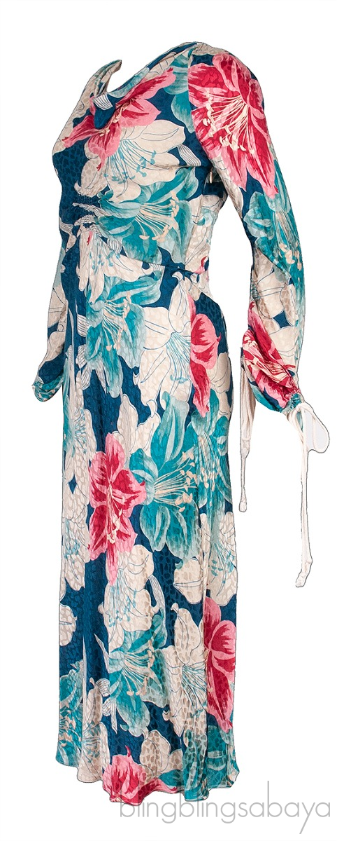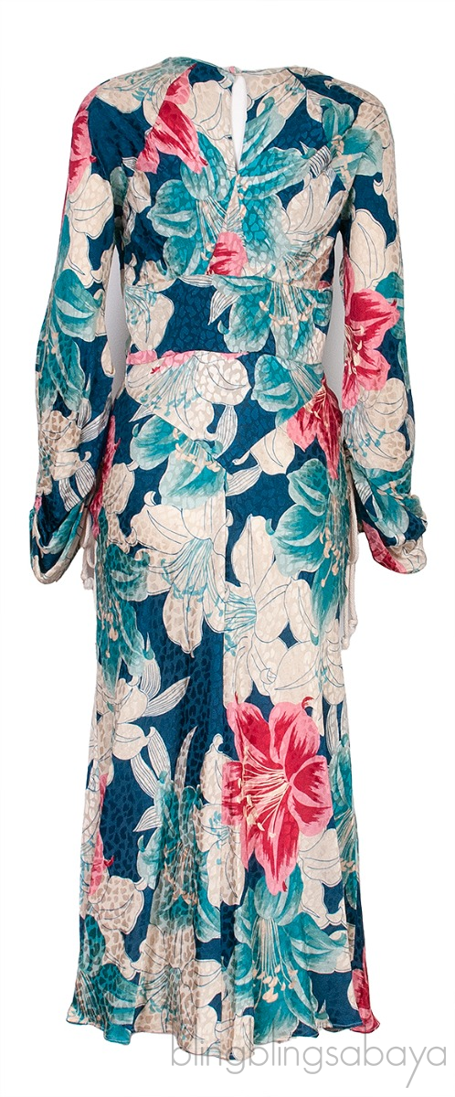 This Blue Floral Print Gathered Midi Dress from Etro is crafted in 100% Silk fabric featuring a floral print all-over, long sleeves with drawstring gathered cuffs, gathered at front, zip fastening on the side and midi length.