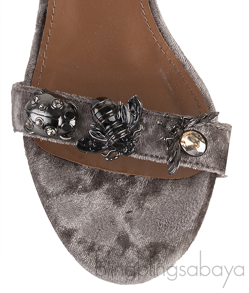 Spotted worn by Lily Adrirge these impressive Fauna 105 Velvet Sandals from Aquazzura are crafted from velvet fabric with brown leather lining. These heels features a strap vamp adorned with gunmetal insects, peep almond toe, lace fastening at front with insect on the edges, covered heels measuring 100 mm high and leather sole.